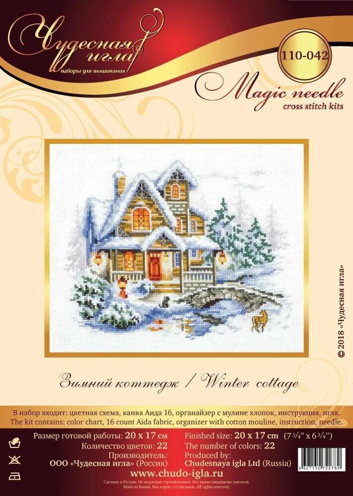 Набор для вышивания Чудесная Игла 110-042 "Зимний коттедж" 20 x 17 см информация: