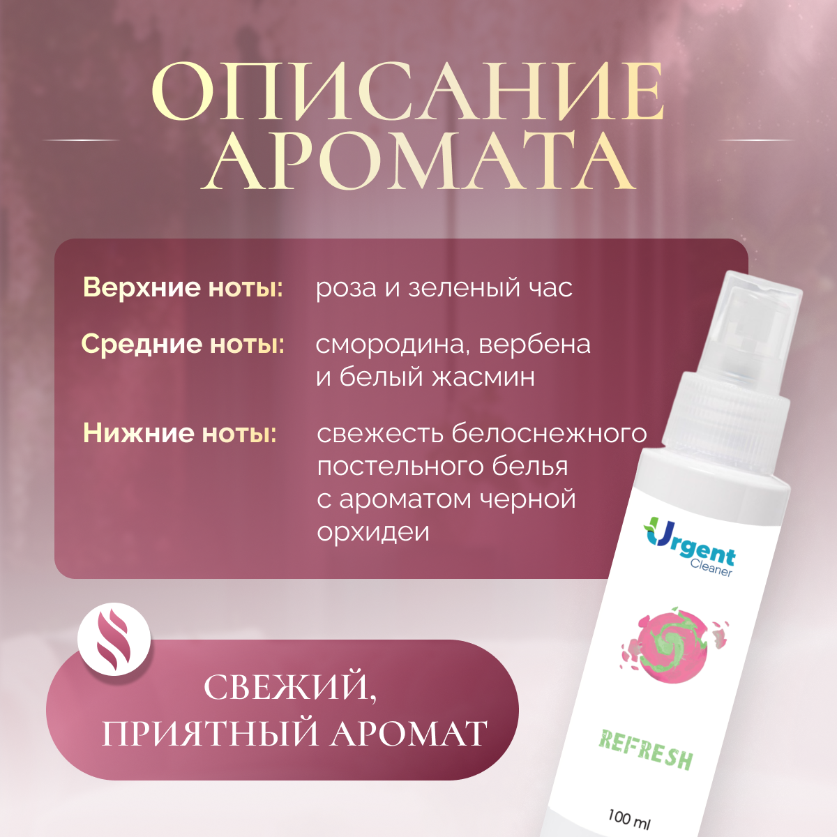 Ароматизатор Urgent для шкафа,дома,белья с ароматом дорого отеля, спрей 100мл информация:
