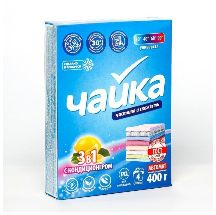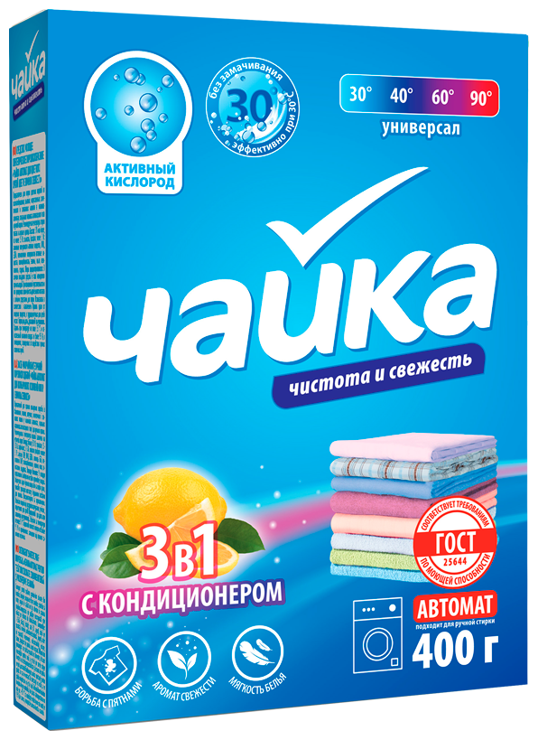 Стиральный порошок Чайка 3 в 1 с кондиционером (автомат), 0.4 кг информация: