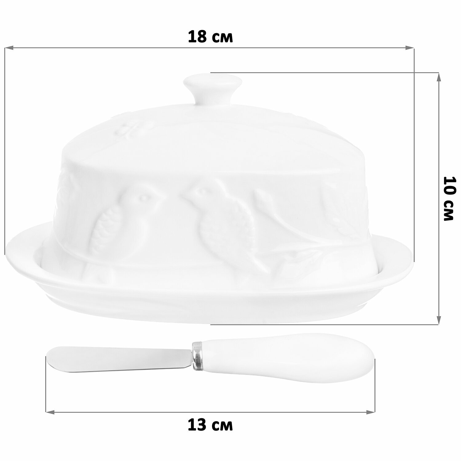 Масленка Elan Gallery "Птички на ветке" 18*13*10 см, фарфор, цвет белый информация: