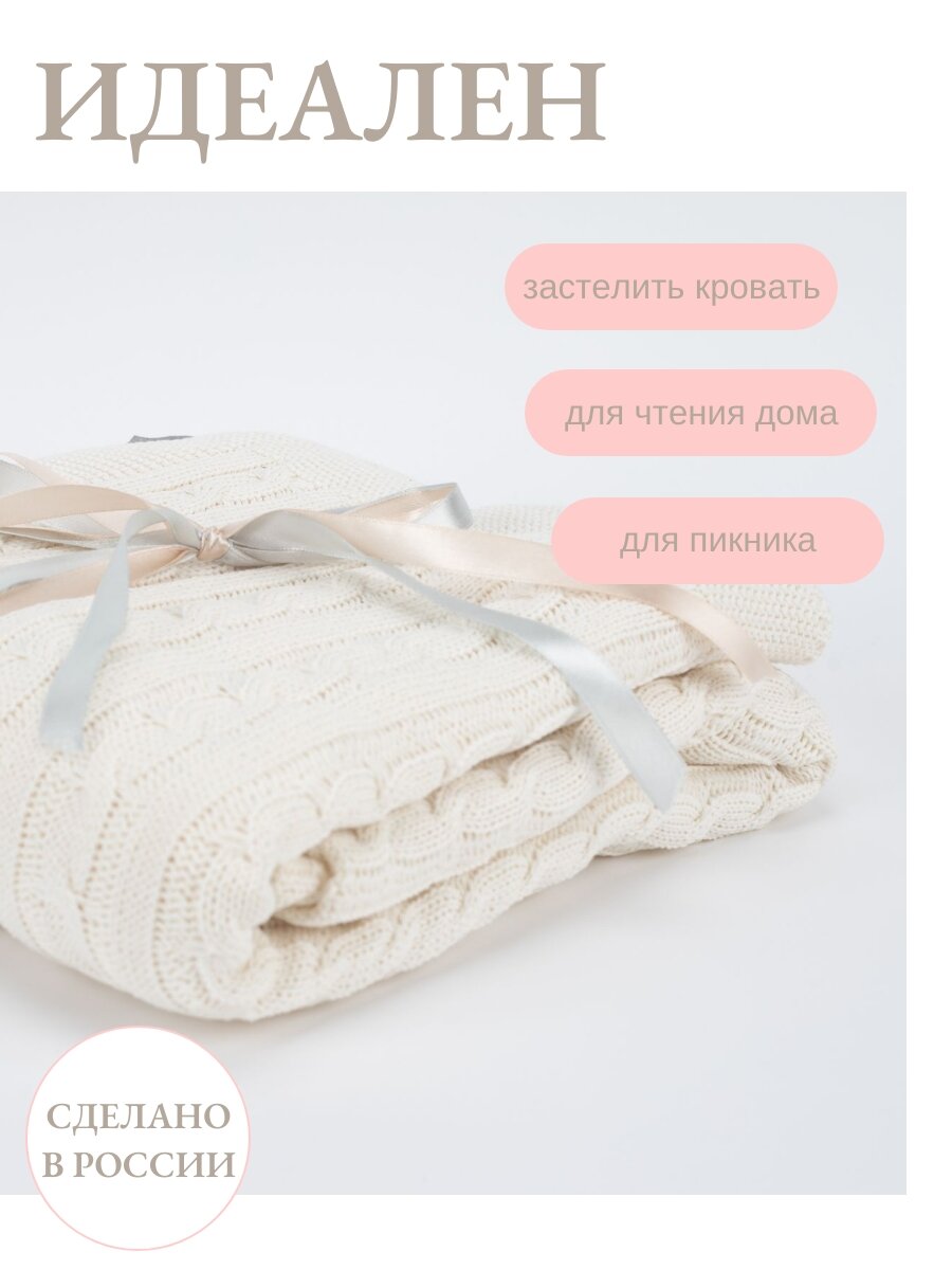 Отзывы на Вязаный плед "Косы" из 100%-го хлопка, размер 180 х 220, цвет бежевый