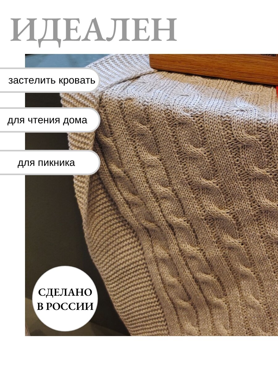 Вязаный плед из 100% хлопка, 180х220 см, бежевый 3 855 ₽