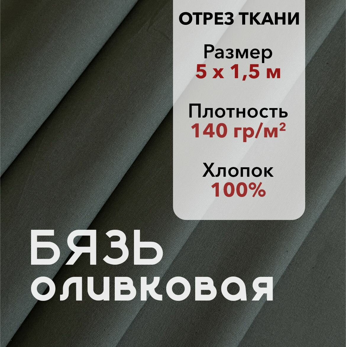 Ткань Бязь ГОСТ Оливковая, отрез 5 м, хлопок 100%, шир 150 см, плотность 140 г/м, Ткань для шитья и рукоделия информация: