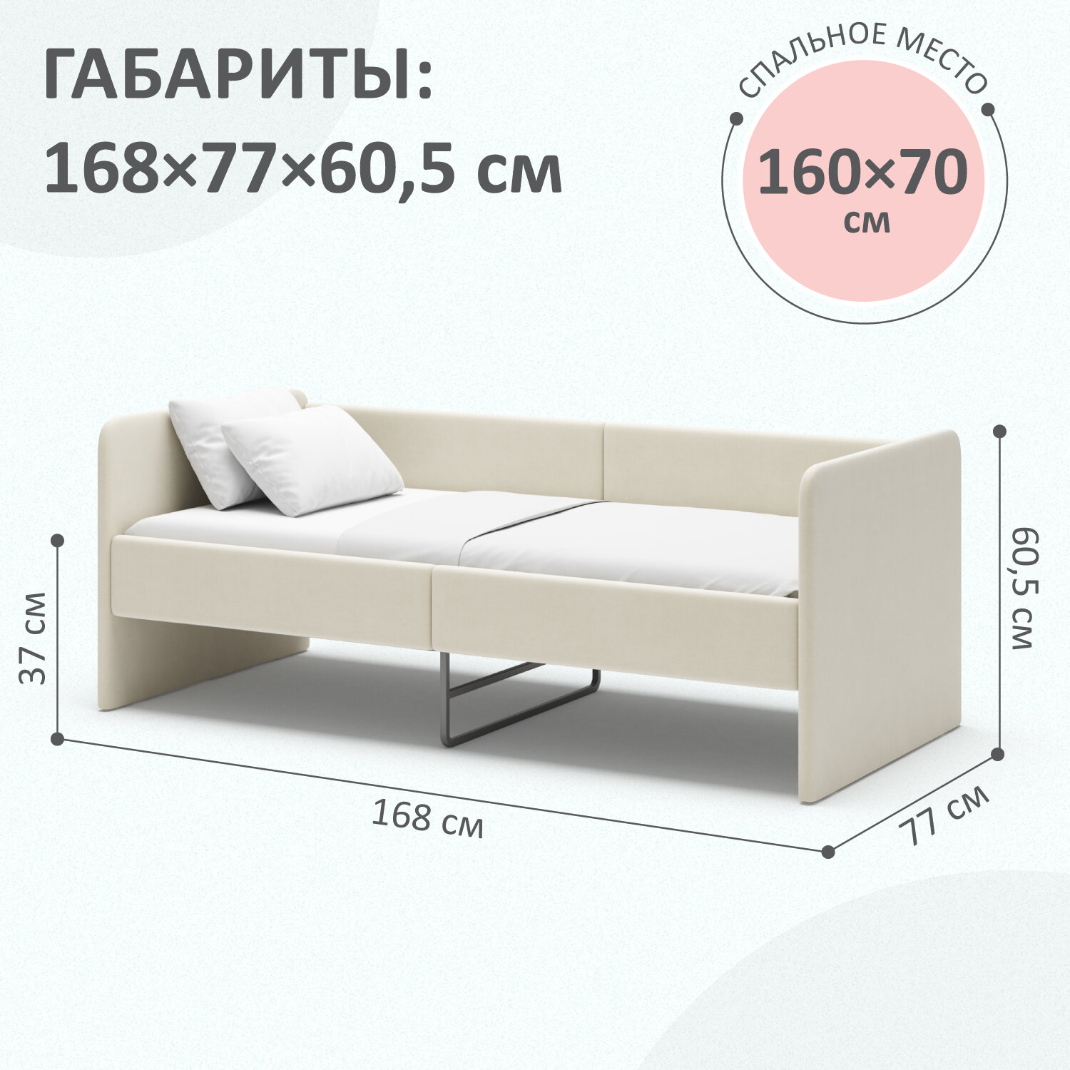 Кровать детская Romack Donny 160х70 с ортопедическим основанием, мягким изголовьем, светло-бежевый микровелюр информация: