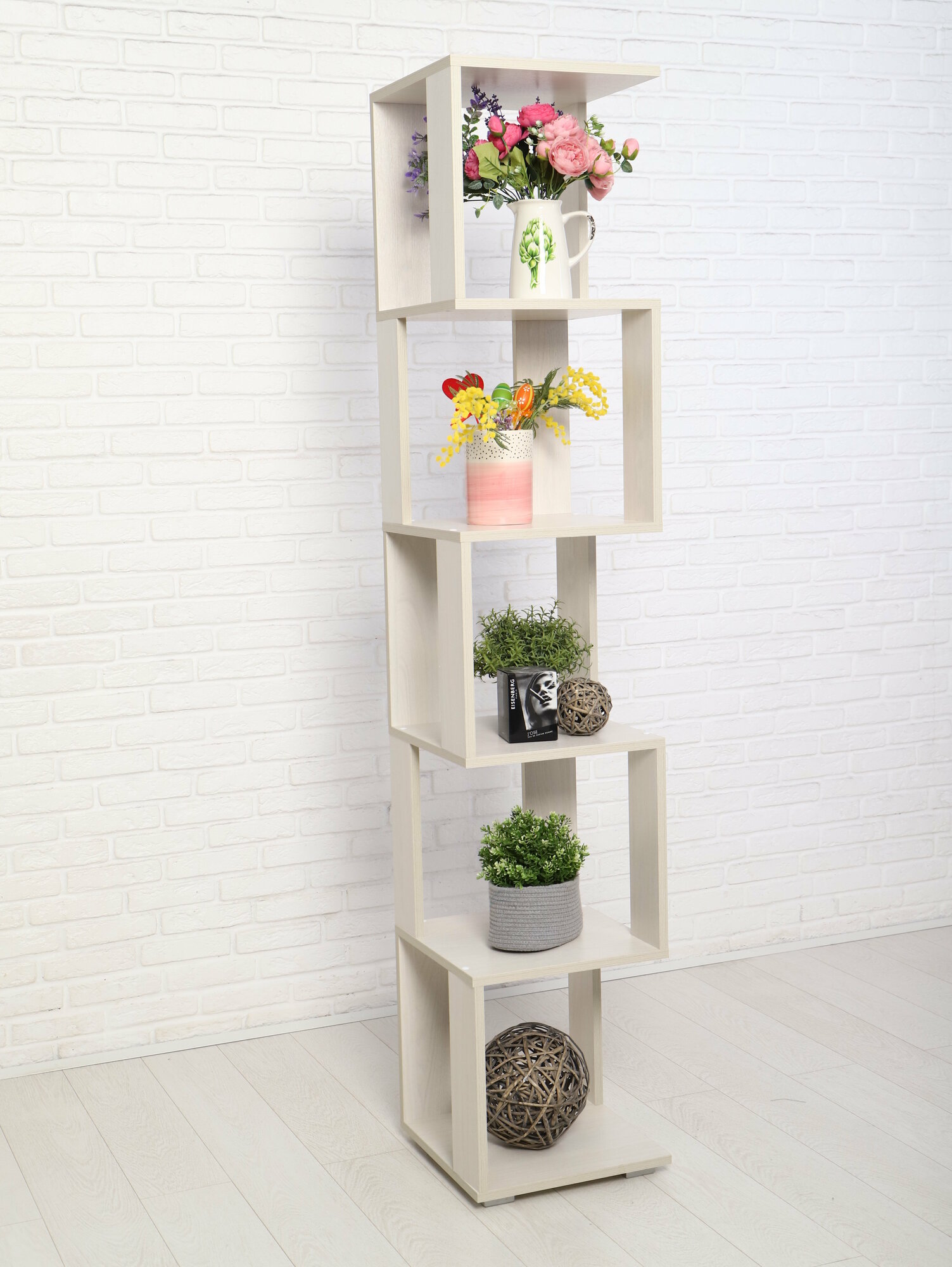10 цен на Стеллаж ПроМос "Змейка" 6 полок 180х35х35 см, ЛДСП, ясень анкор белый