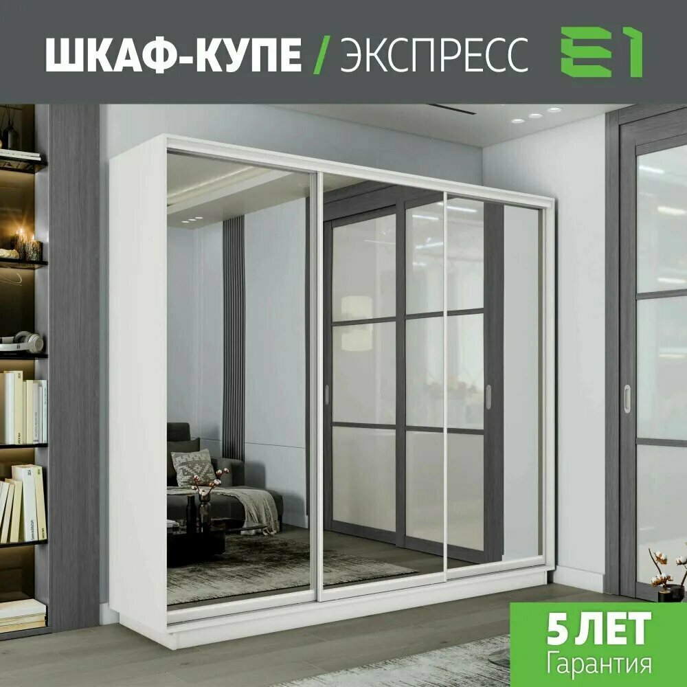 Шкаф-купе Экспресс 3-х дверный, Зеркала, 240х45х220, Мебельная компания Е1, Белый 36 088 ₽