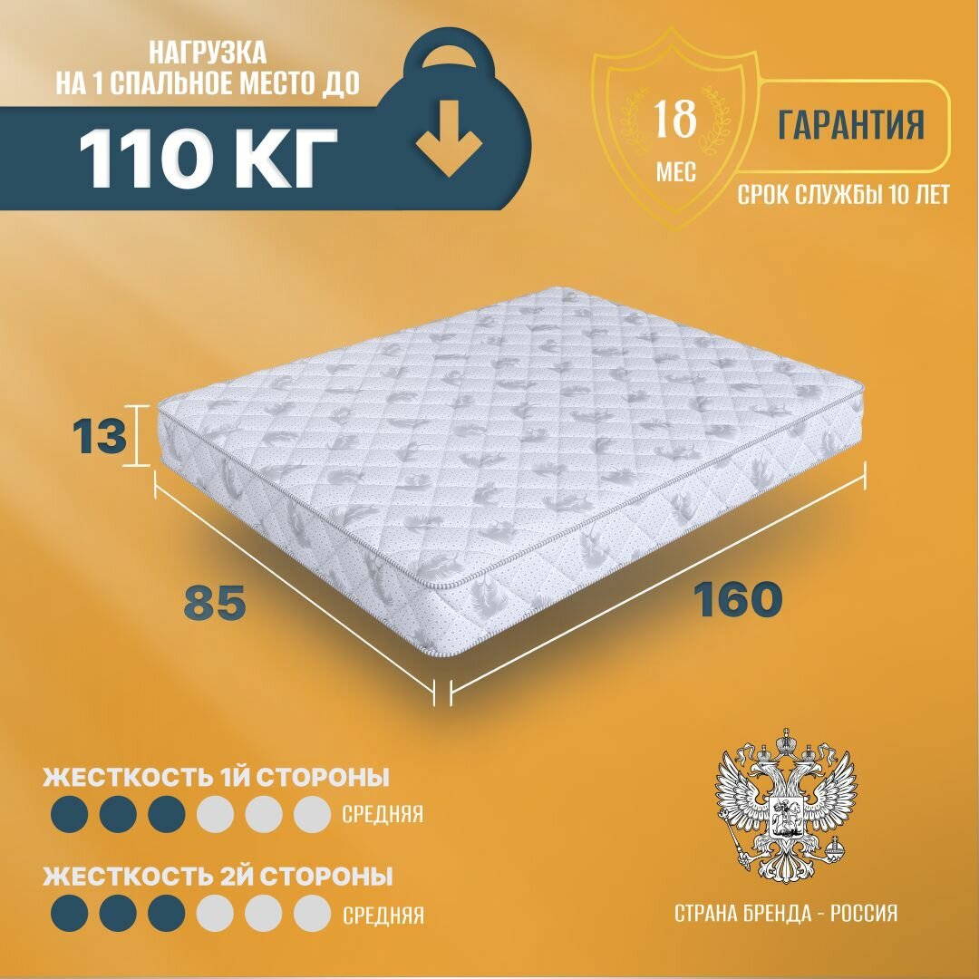 Матрас 85х160 беспружинный, анатомический, для кровати, Cosmic Galaxy Joy, средне-жесткий 13 см с одинаковой жесткостью информация: