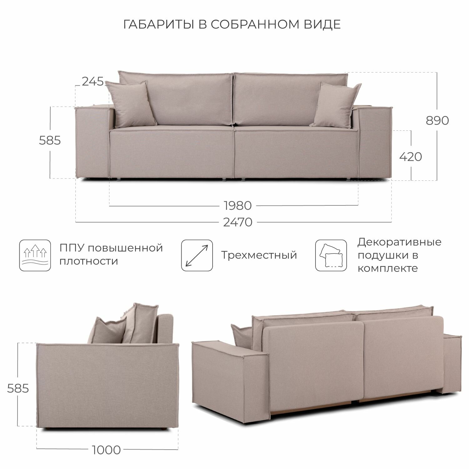 | Особенности | пружинный блок, раскладная конструкция, с подлокотниками, съемные подушки, ящик для белья |
