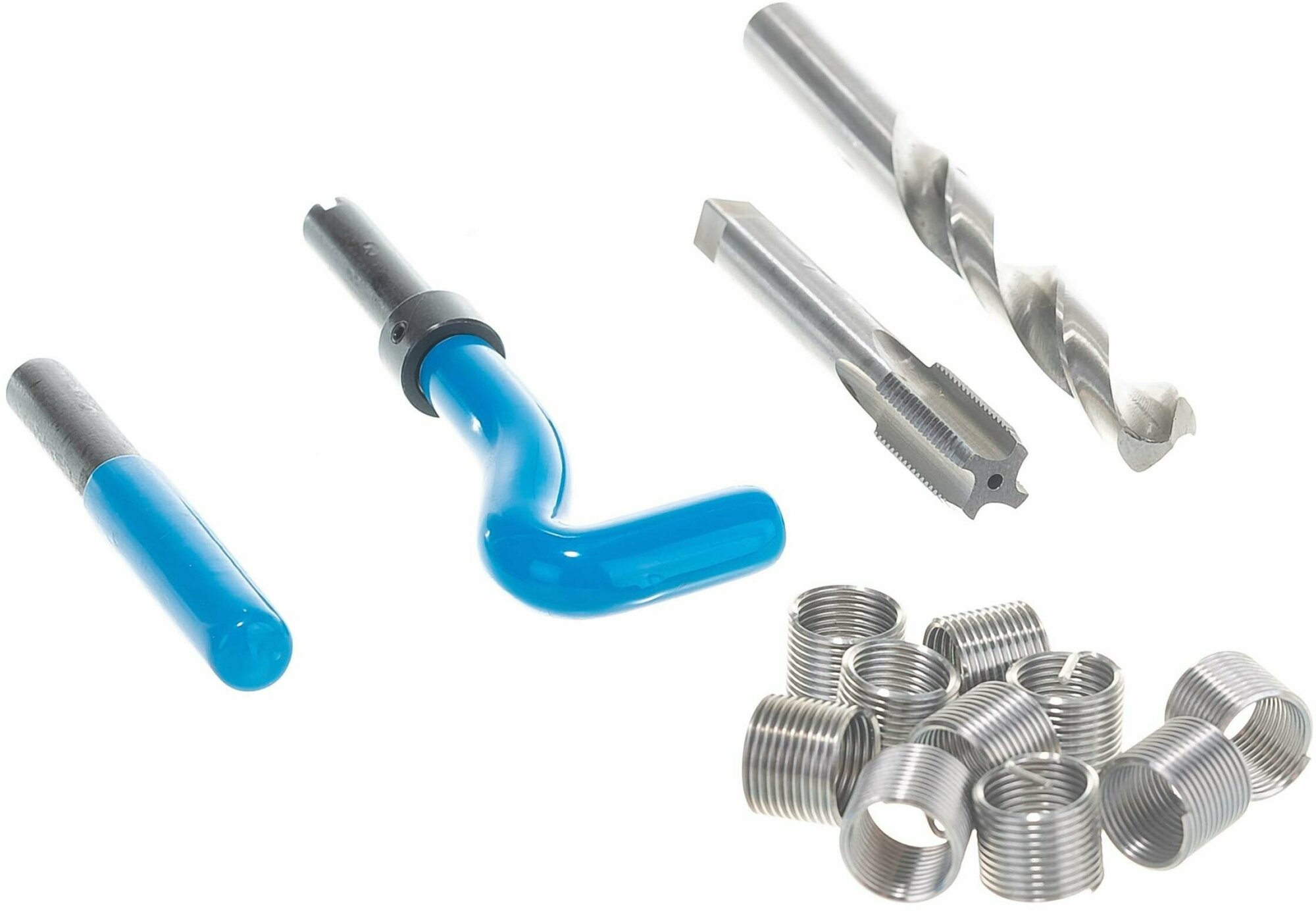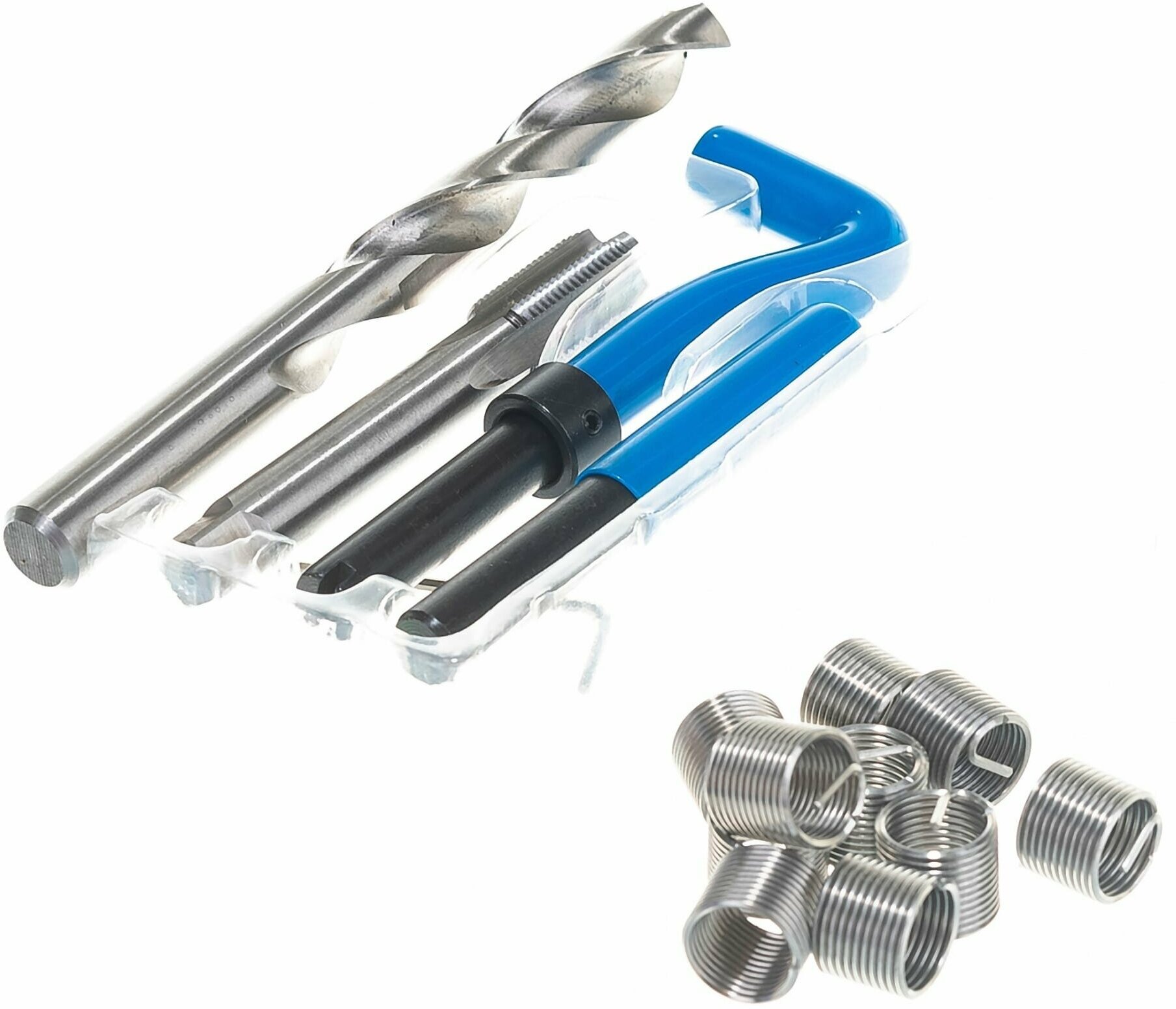 | Подробная комплектация | Комплект включает в себя 10 предметов Резьбовые вставки: М14×1.5Х21.0 мм (5 шт.). Сверло 1 шт. Метчик 1шт. Выколотка 1шт. Оправка для вставок 1 шт. Ключ шестигранный L-образный, 2 мм (1 шт.). |