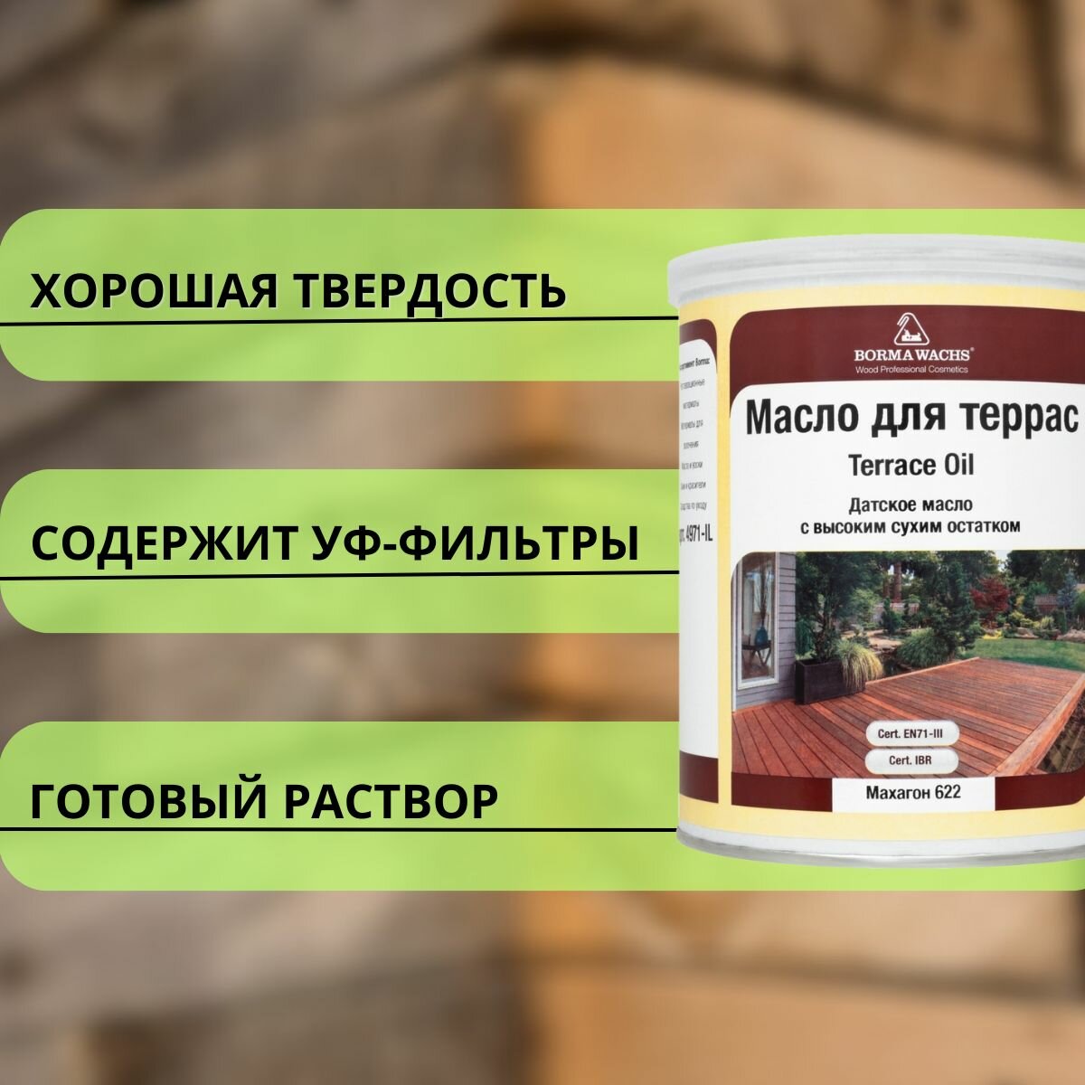 10 цен на Масло для дерева/террас датское BORMA DECKING OIL 1л, 622 Махагон 4971IL-DS622