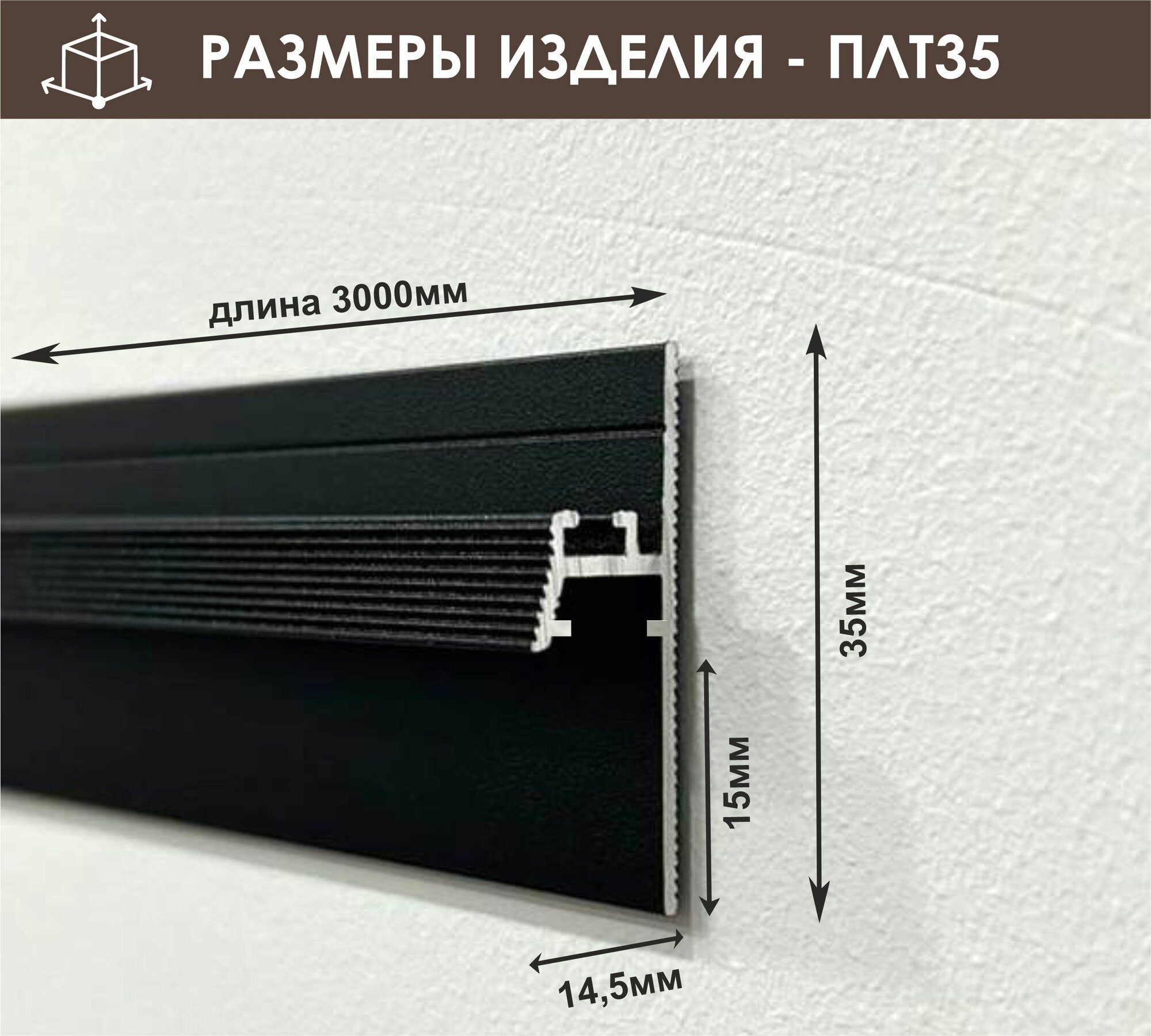 Теневой профиль - плинтус ПЛТ-35, OSKprofil, 3 метра, чёрный, теневой зазор 15мм. информация: