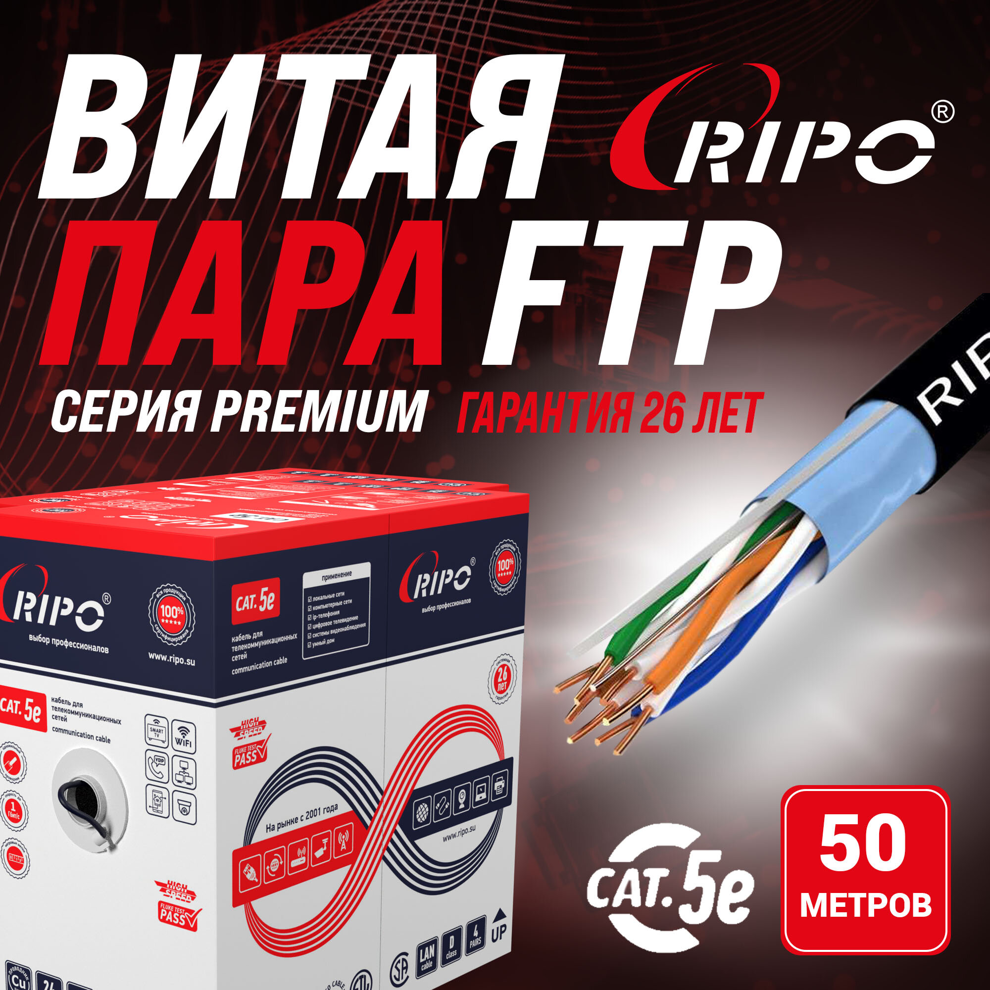 Ripo Витая пара ftp4 cat5e 24awg cu (outdoor) (50м) 001-122014/50 информация: