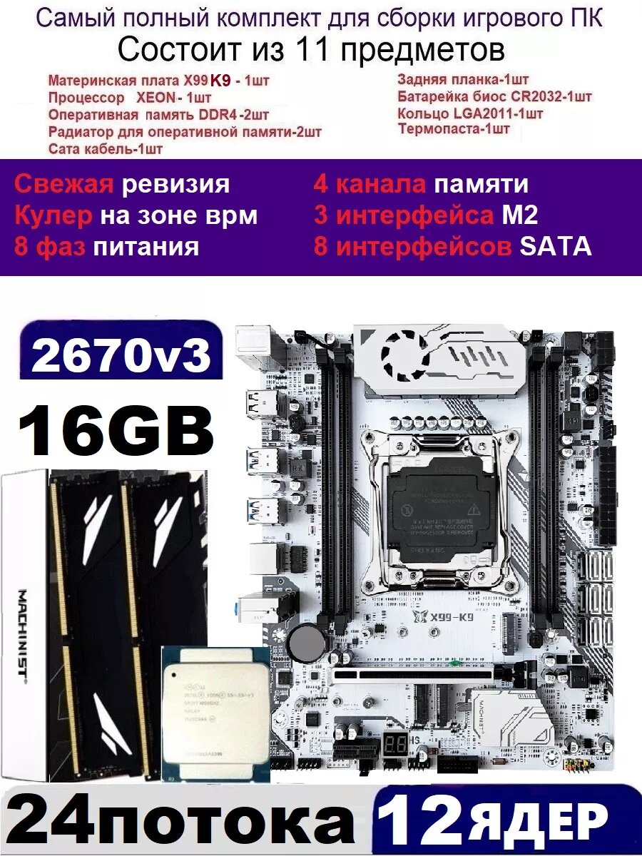 10 цен на XEON 2670v3 2x8G Комплект MACHINIST K9(Аналог Huananzhi TF)