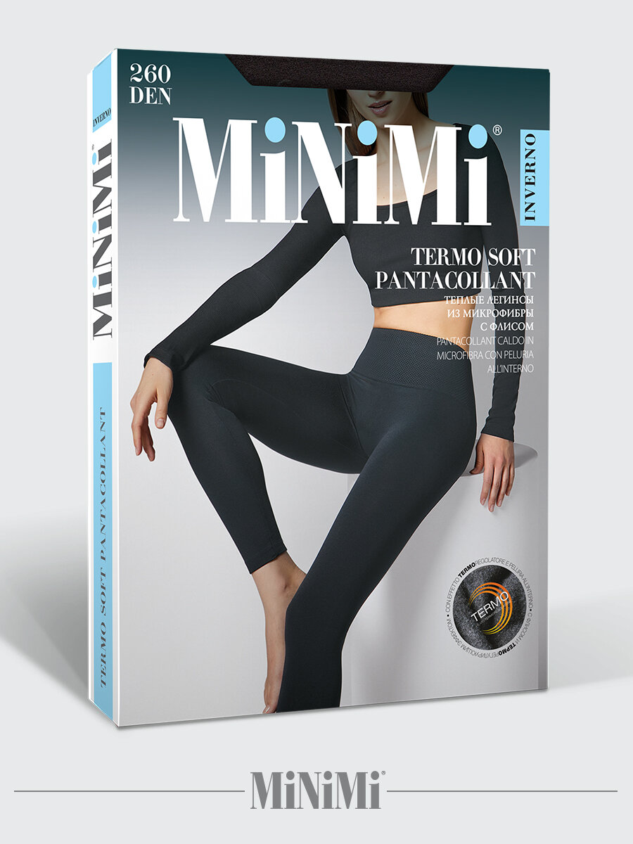 Легинсы женские MiNiMi TERMO SOFT 260 теплые, бесшовные, с широким поясом цвет темно-серый размер 4(L/XL) информация: