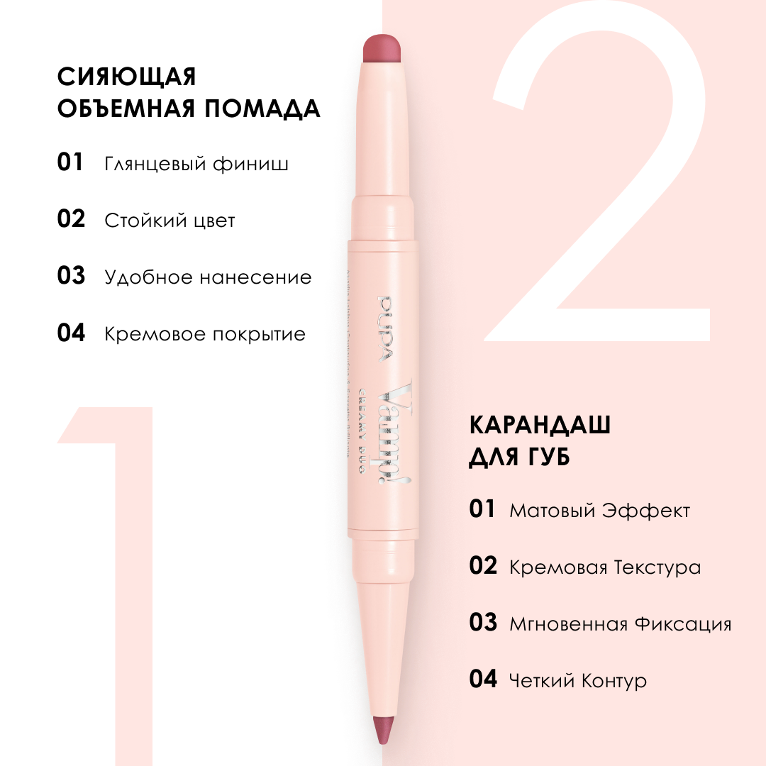 PUPA Набор для губ Vamp!Creamy Duo (Губная помада 0,8 г + Карандаш для губ 0,2 г), 007 1 921 ₽