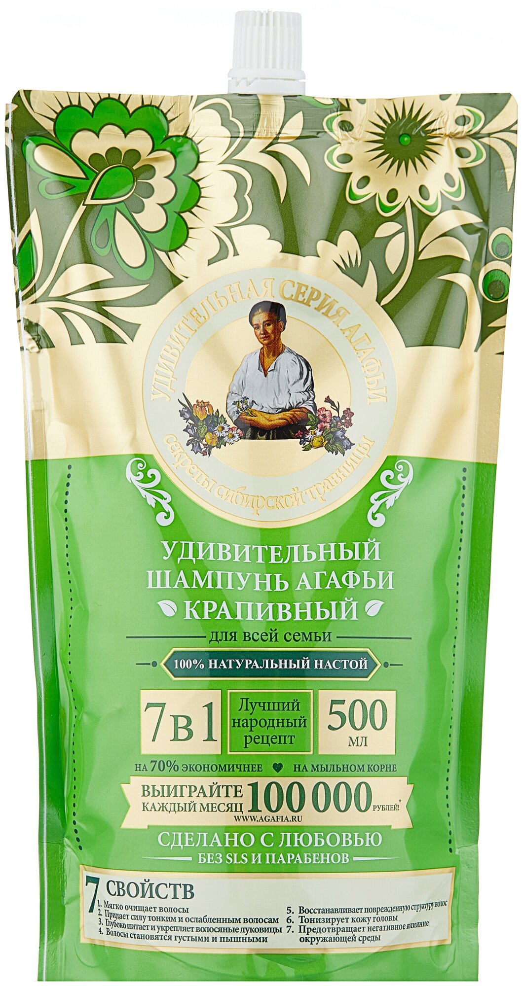 Удивительная Серия Агафьи шампунь Крапивный 500мл Дой-пак