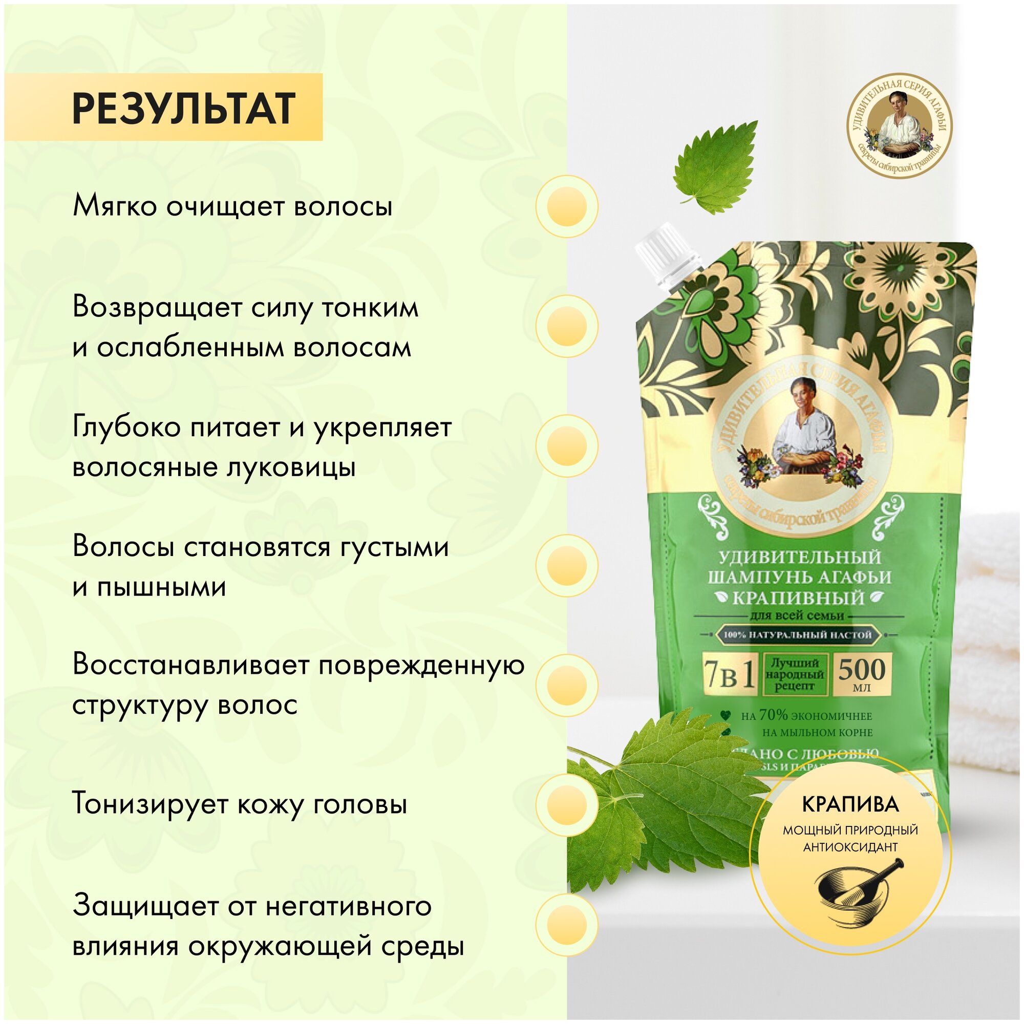 Рецепты бабушки Агафьи Удивительный Шампунь Агафьи Крапивный 500мл информация: