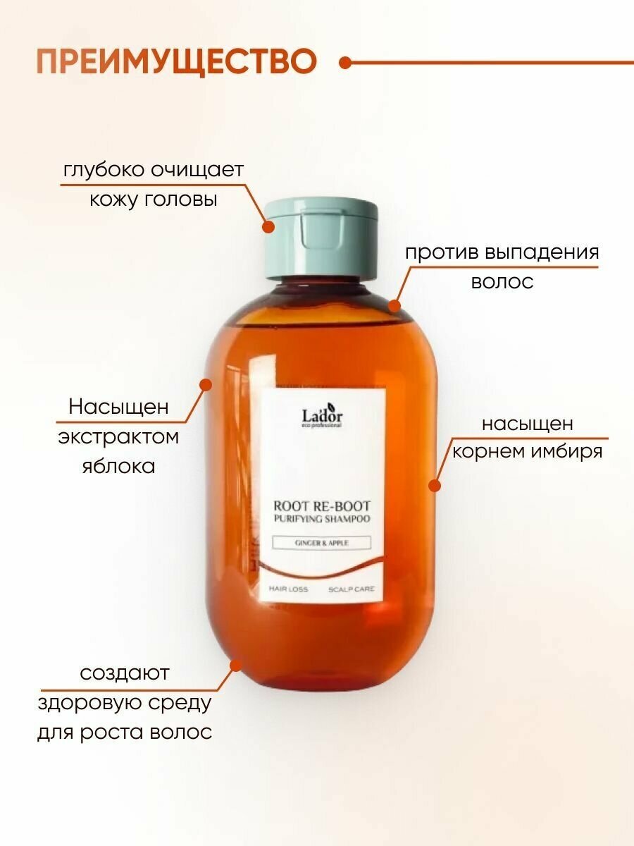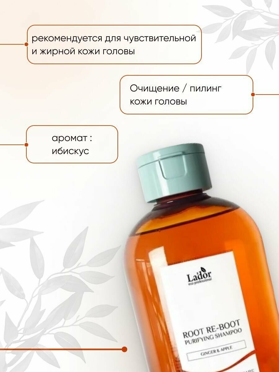 Шампунь Lador Root Re-Boot Purifying Shampoo (Ginger & Apple) для чувствительной и жирной кожи головы с имбирем и яблоком, 300 мл информация: