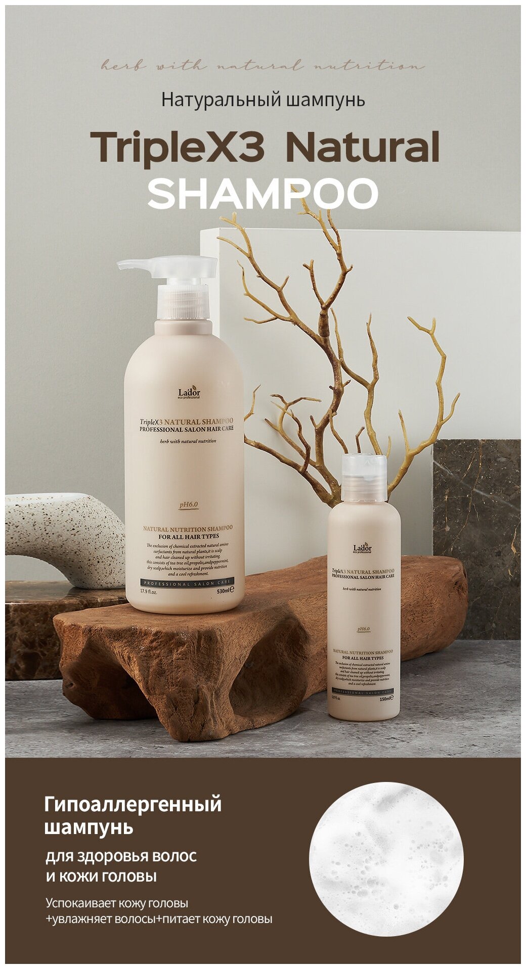 Шампунь с натуральными ингредиентами La'dor TripleX3 Natural Shampoo 10 мл