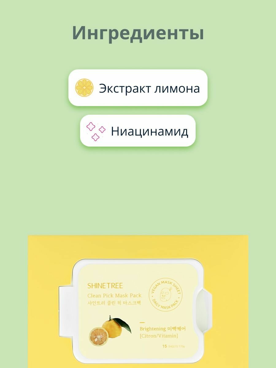 SHINETREE Маска для лица с экстрактом лимона и ниацинамидом (для сияния кожи) 15 шт информация: