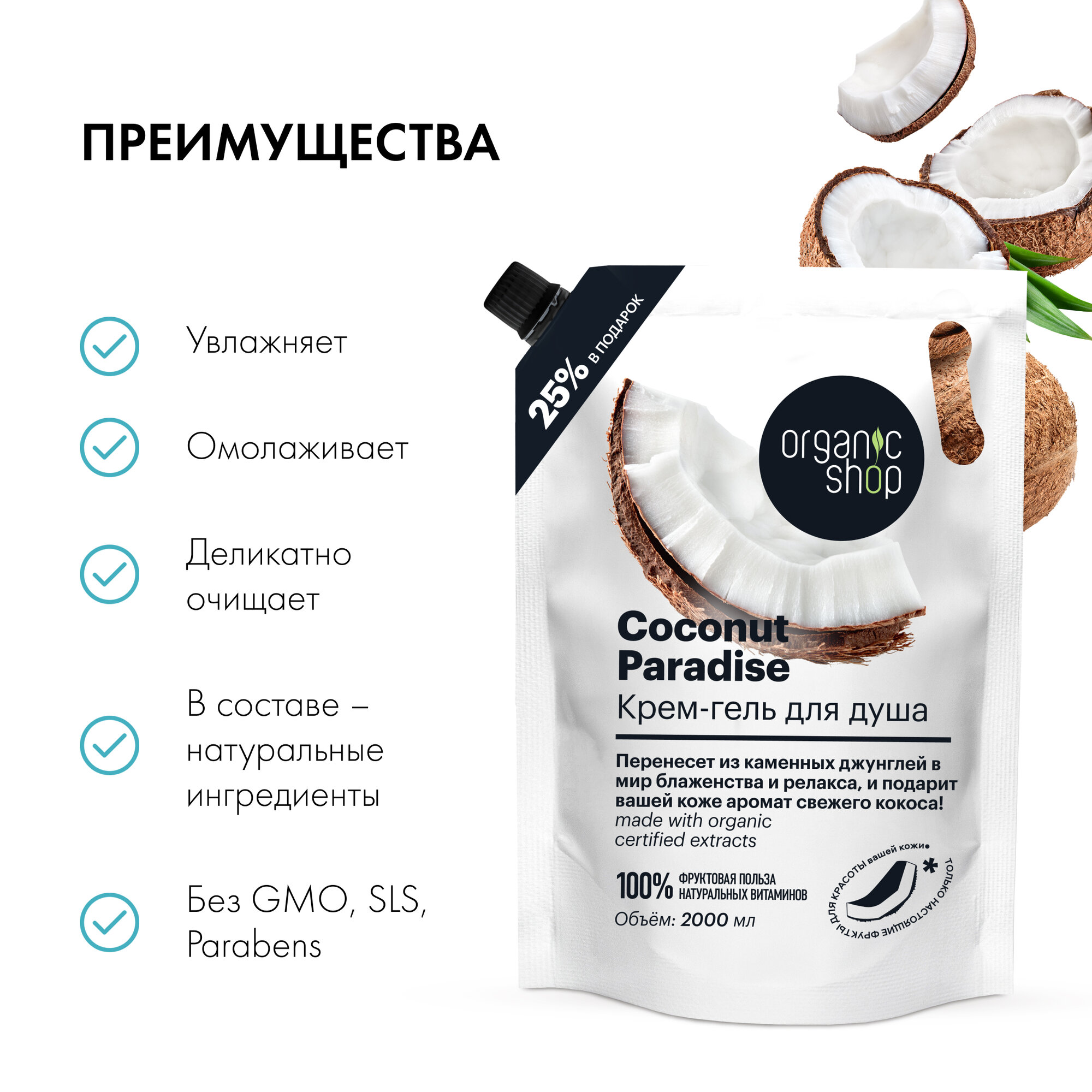Крем гель для душа женский Organic Shop Coconut Paradise увлажняющий 2000 мл информация: