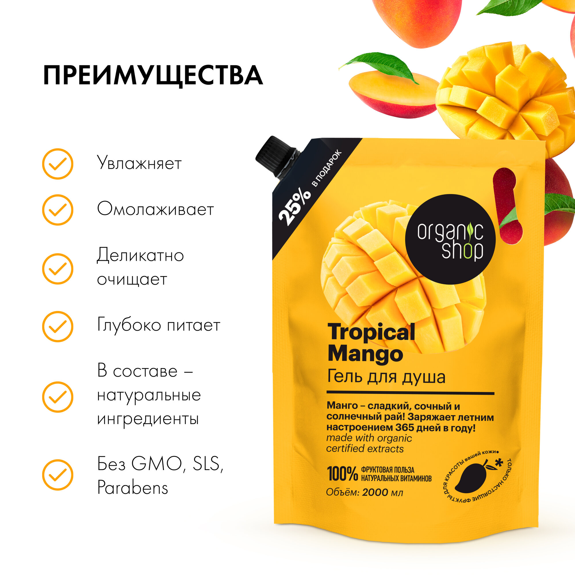 Гель для душа женский Organic Shop Tropical Mango увлажняющий 2000 мл информация: