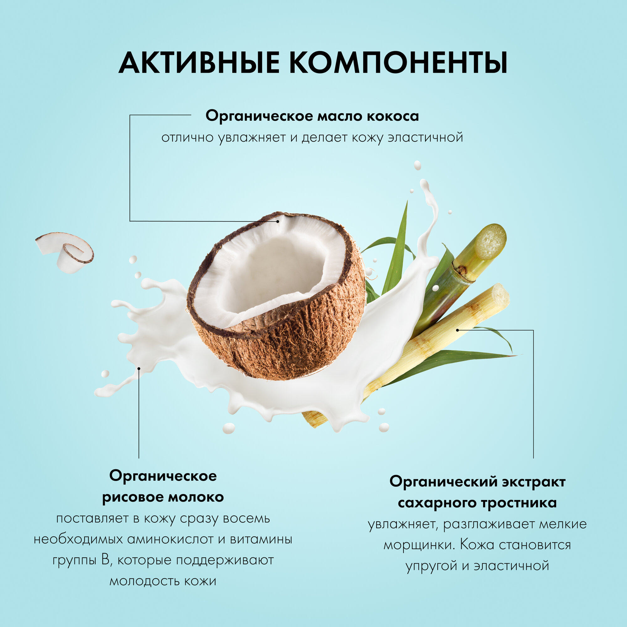 | Состав | aqua with infusions of organic cocos nucifera oil (органическое масло кокоса), organic oryza sativa extract (органическое рисовое молоко), sodium coco-sulfate, lauryl glucoside, cocamidopropyl betaine, glycerin, polyquaternium-7, sodium chloride, parfum, styrene/acrylates copolymer, citric acid, kathon |