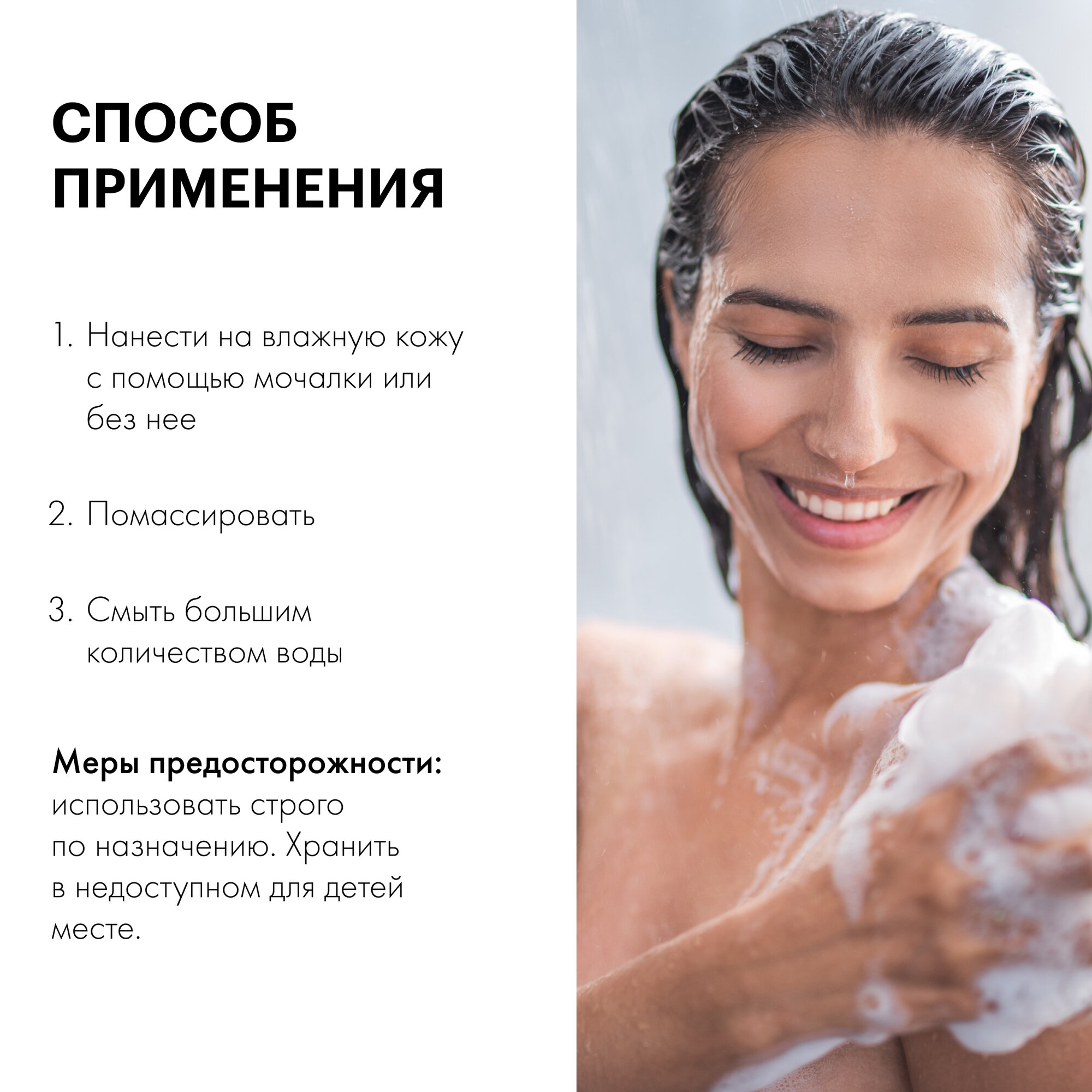 | Способ применения | нанести на влажную кожу с помощью мочалки или без неё, помассировать, смыть большим количеством воды |