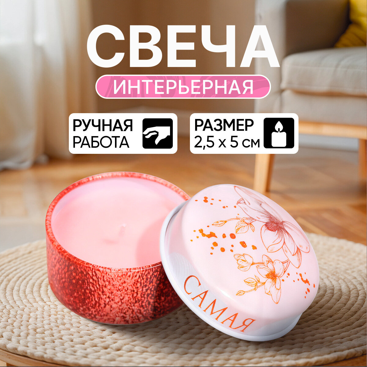 Отзывы на Свеча ароматическая в железной банке «Самая нежная», розовая, аромат лаванды