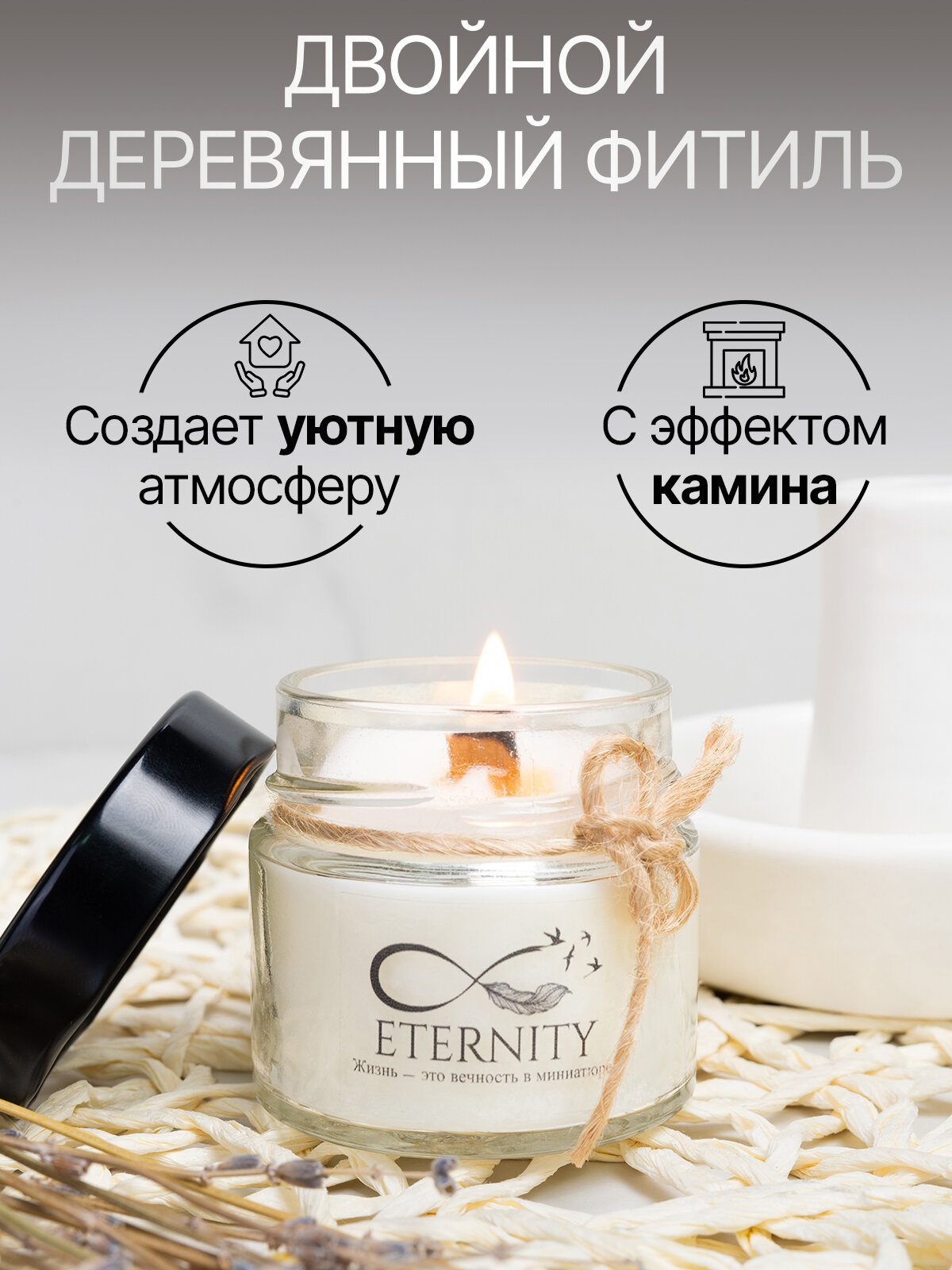 Свеча ароматическая Eternity с деревянным фитилём, 100 мл, аромат черная смородина 315 ₽