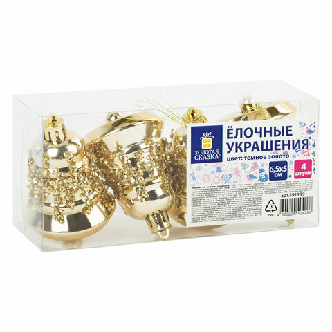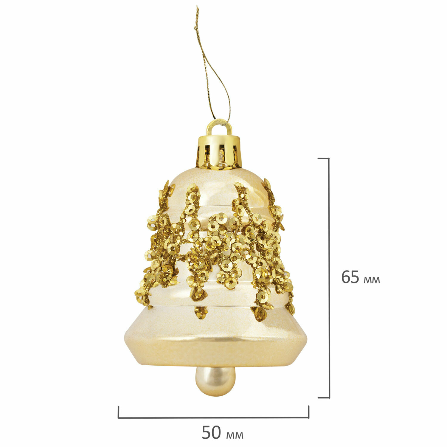 Украшение ёлочное "Колокольчики", 4 шт., 6,5х5 см, пластик, золотистые, золотая сказка, 591999, 591999 информация: