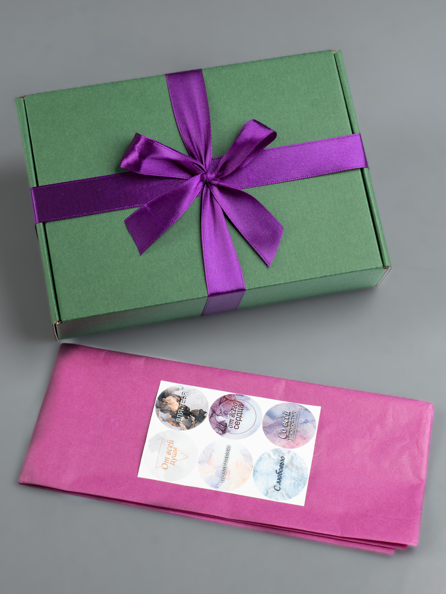 | Комплектация | 1 крафтовая коробка черная, бумага тишью, сатиновая лента 1.5м, набор наклеек для любой категории людей. |