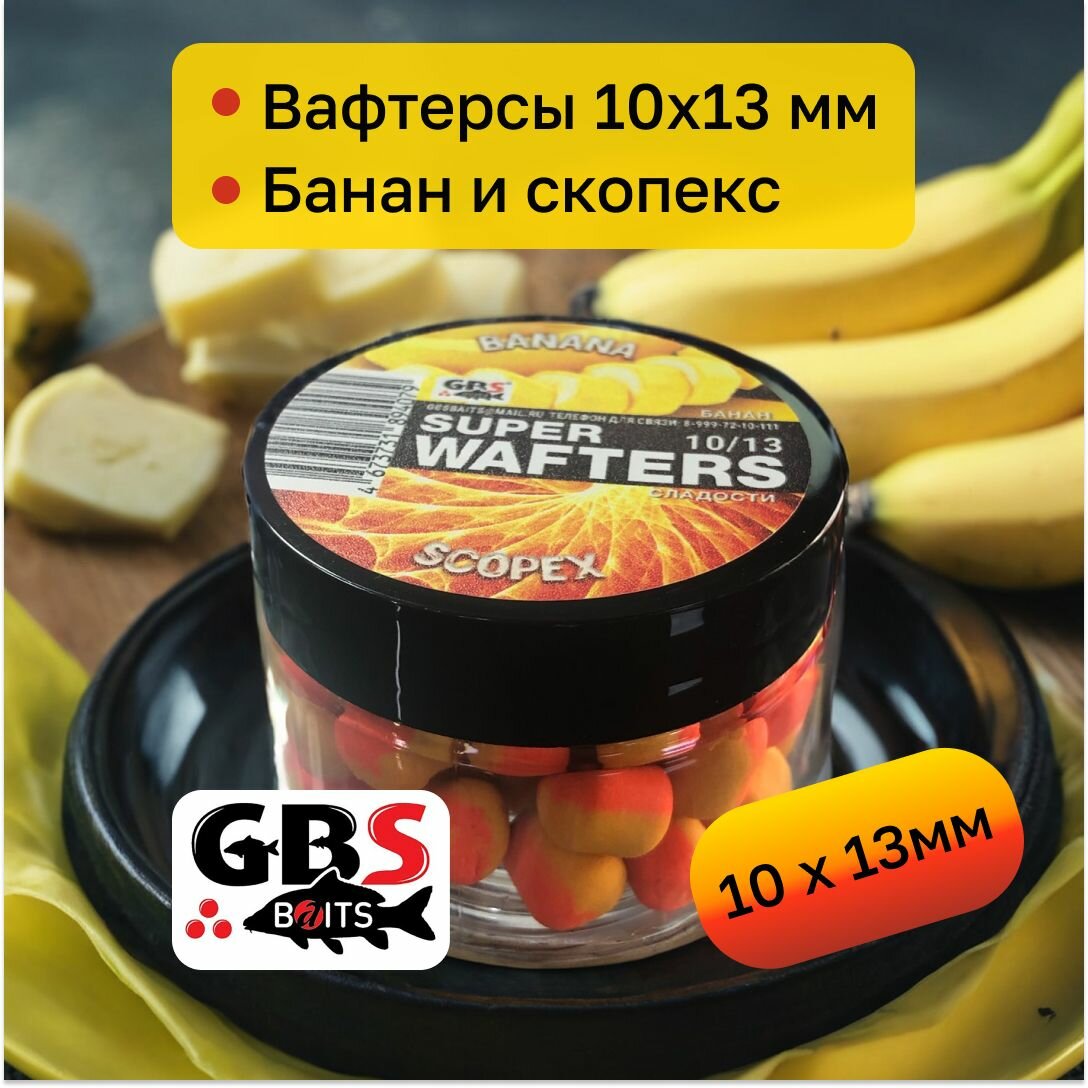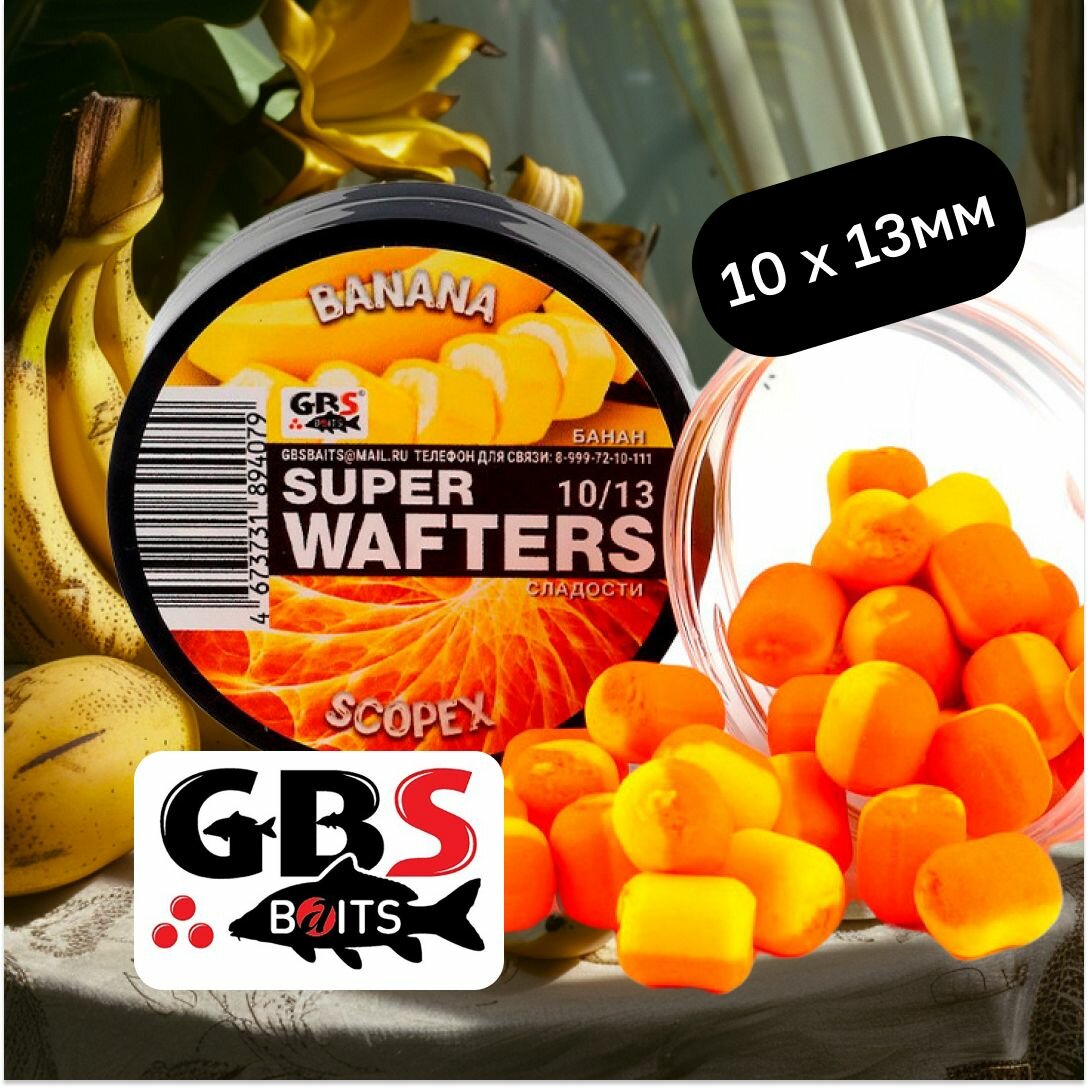 10 цен на Вафтерсы карповые нейтральные GBS 10х13 мм вкус Banana Scopex(Банан и скопекс)