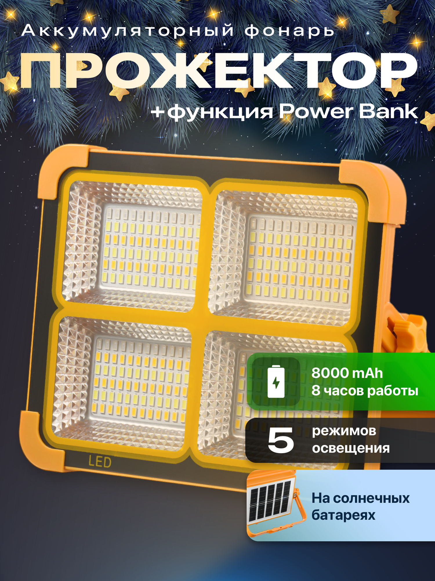 Фонарь аккумуляторный прожектор на солнечных батареях для кемпинга Ocean of Light информация: