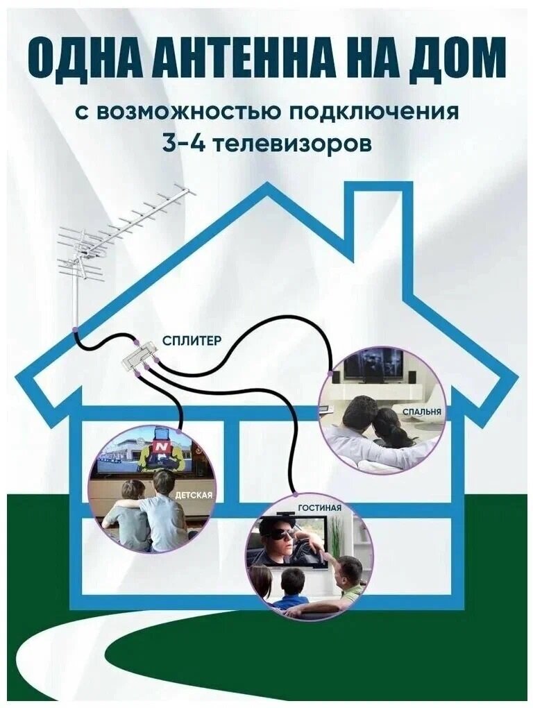 Антенна для цифрового ТВ самая мощная наружная тв антенна МИР-8 (10 дб) с усилителем (60 дб) полный комплект для подключения
