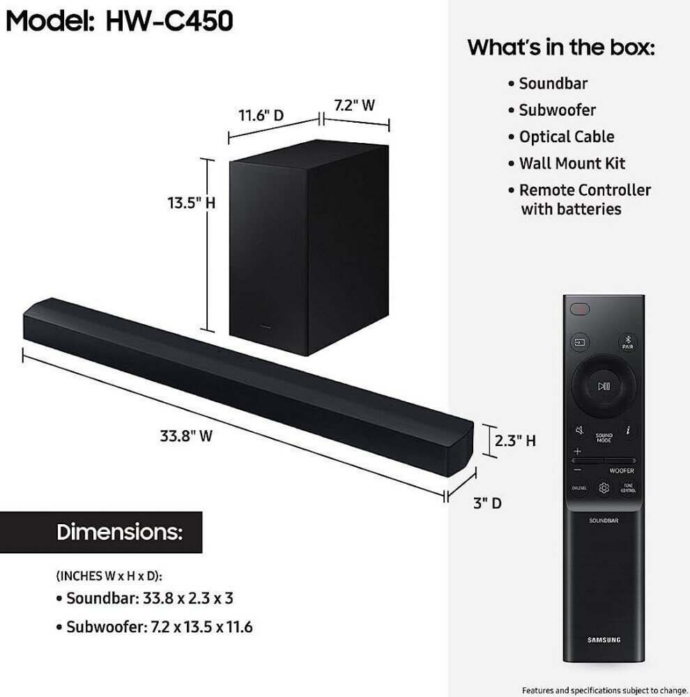 Саундбар Samsung HW-C450/RU 80Вт+120Вт black