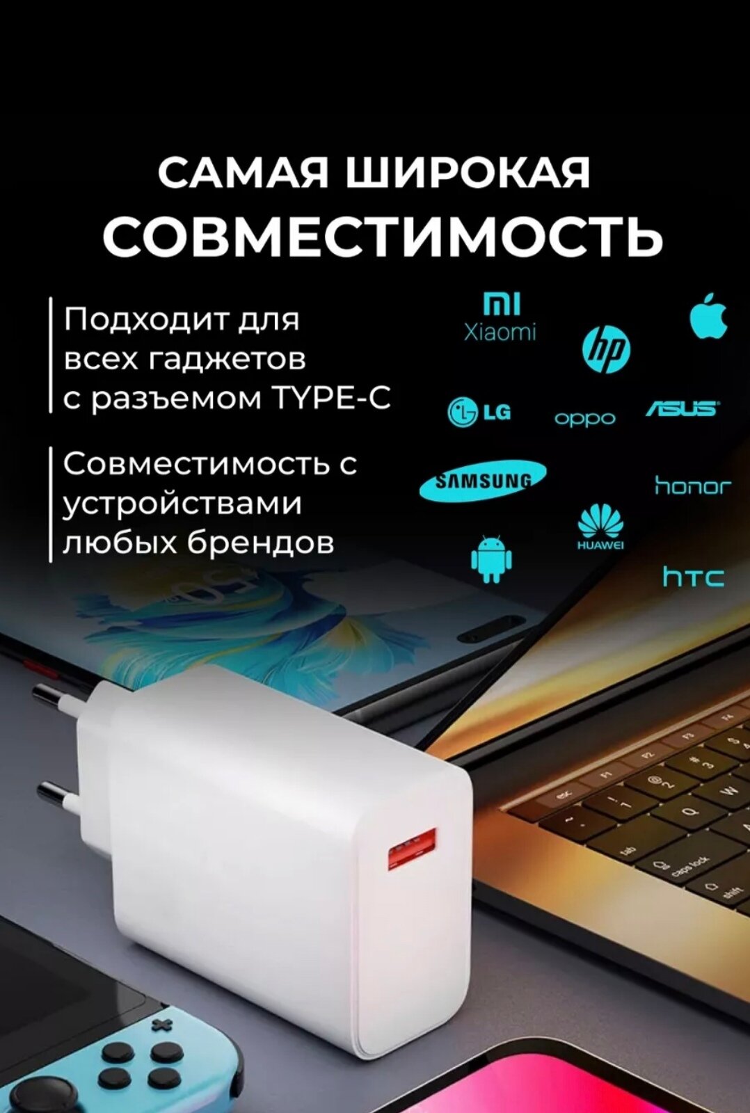 Зарядное устройство для телефона с быстрой зарядкой Xiaomi/Oppo/Redmi/Samsung информация: