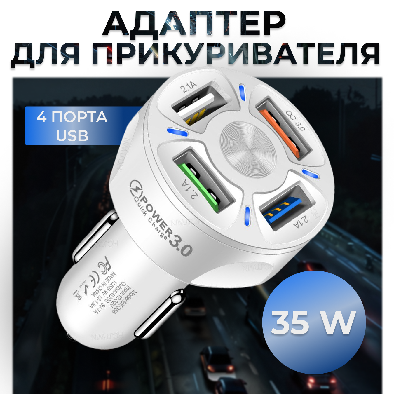 Зарядный адаптер QuickCharge 3.0 / 4 USB-A / Быстрая зарядка / Белый / 35 Вт информация: