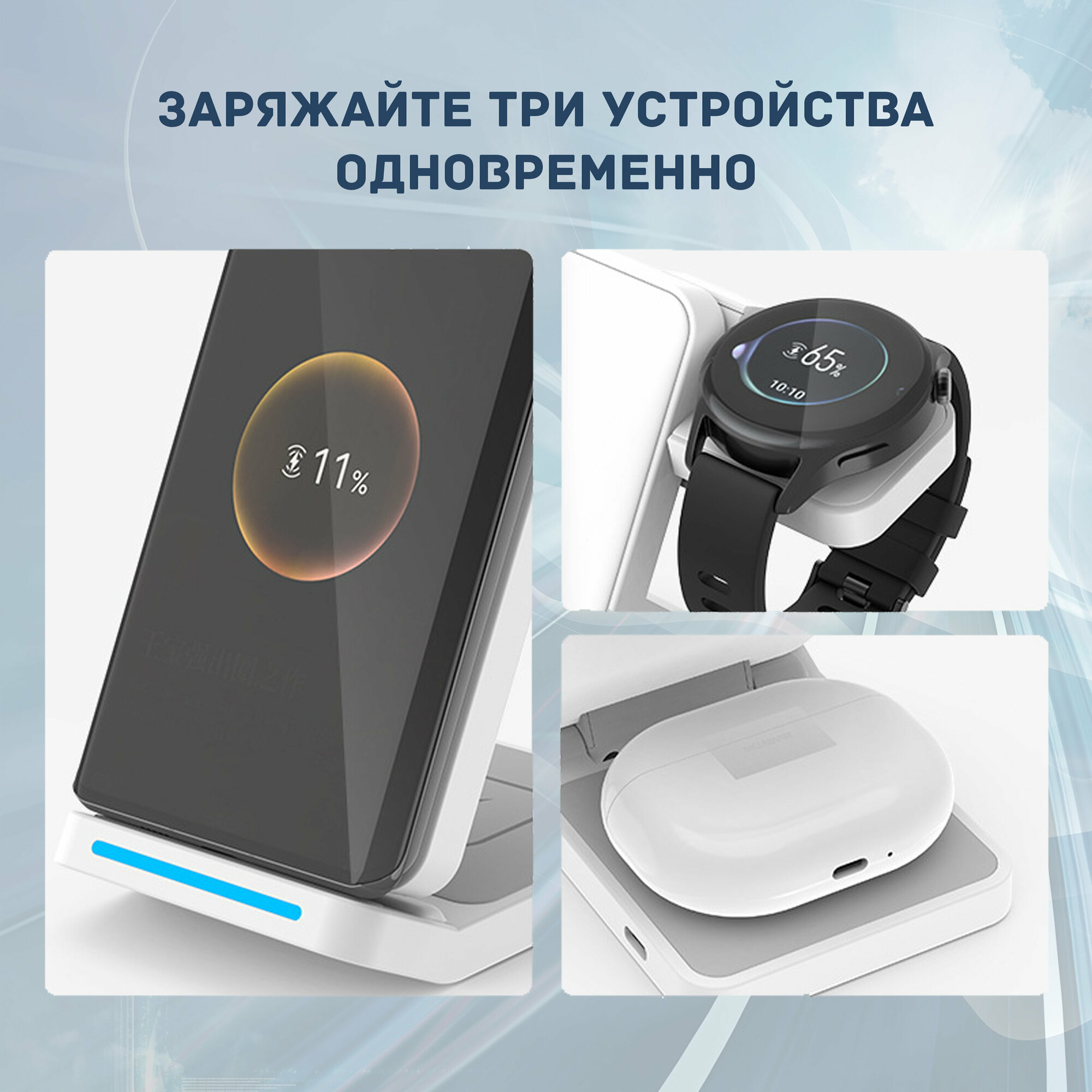 Беспроводная зарядка 3 в 1 для HUAWEI, док станция QI (PORTABLE model) Белый информация: