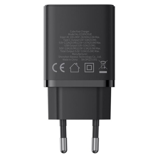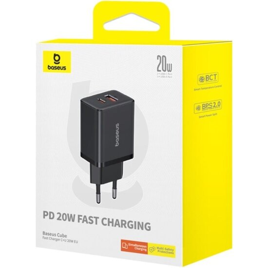 Сетевое зарядное устройство Baseus Cube USB-C+A 20W, черный информация: