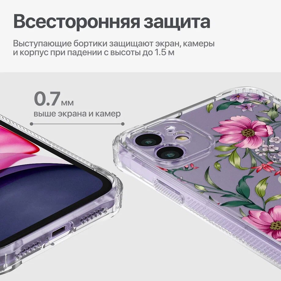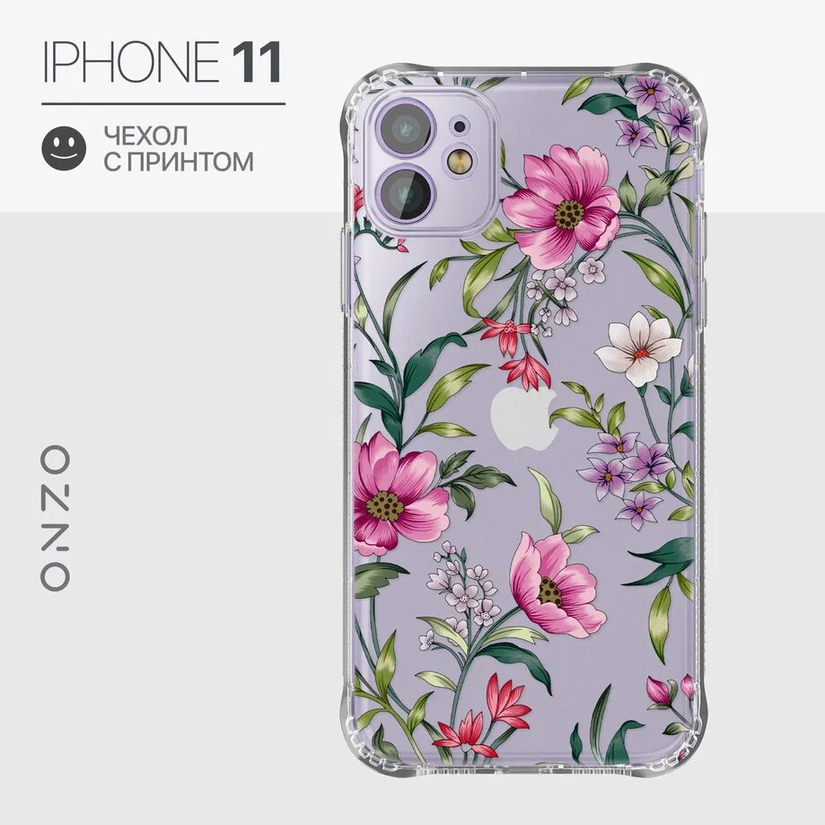 Отзывы на Чехол на iPhone 11 противоударный прозрачный бампер Айфон 11 с принтом "Floral pattern"