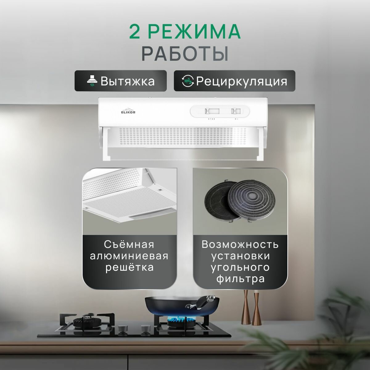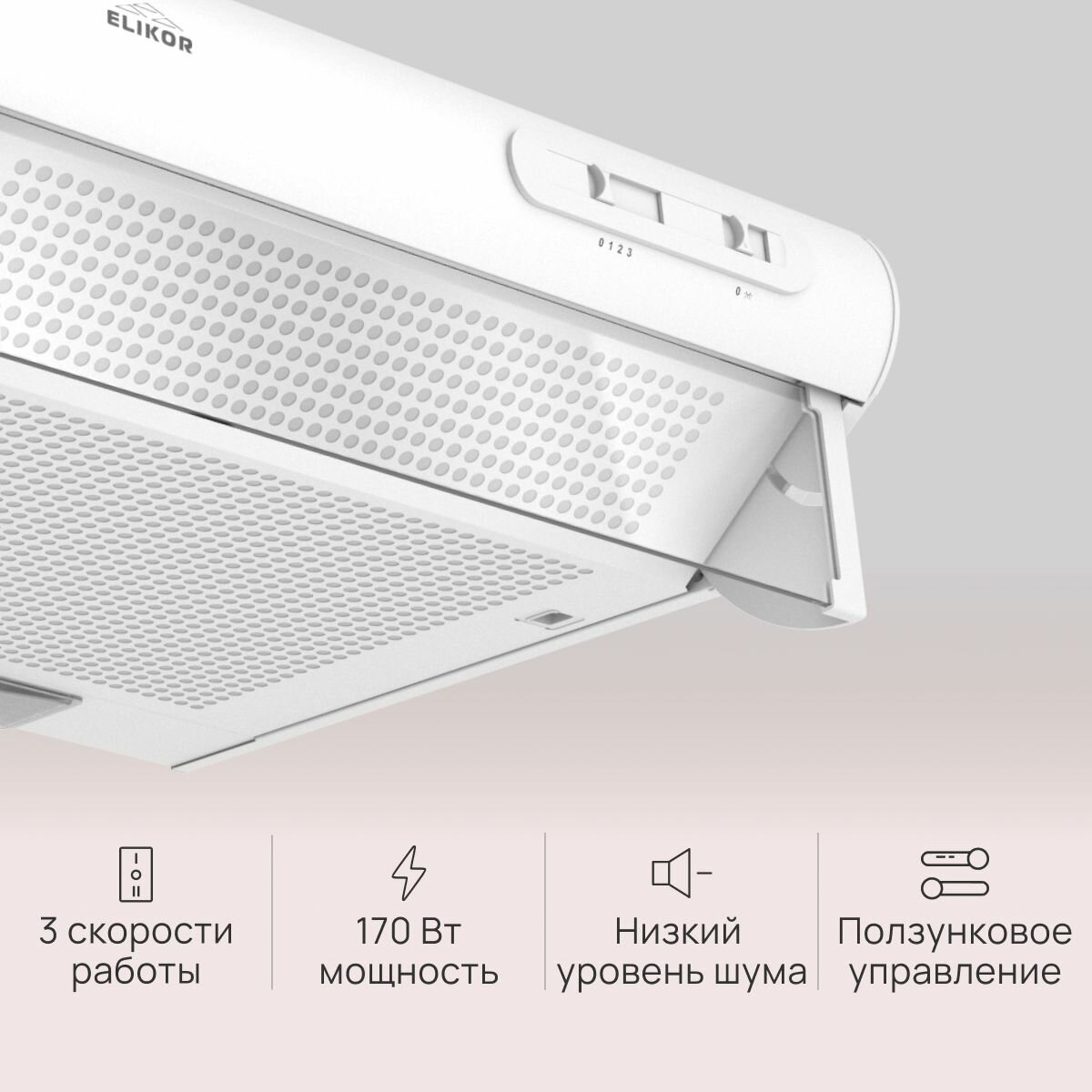 10 цен на Вытяжка кухонная 50 см ELIKOR Davoline, встраиваемая, производительность - 290 м3/ч, управление ползунковое, 3 скорости, лампы накаливания, белый