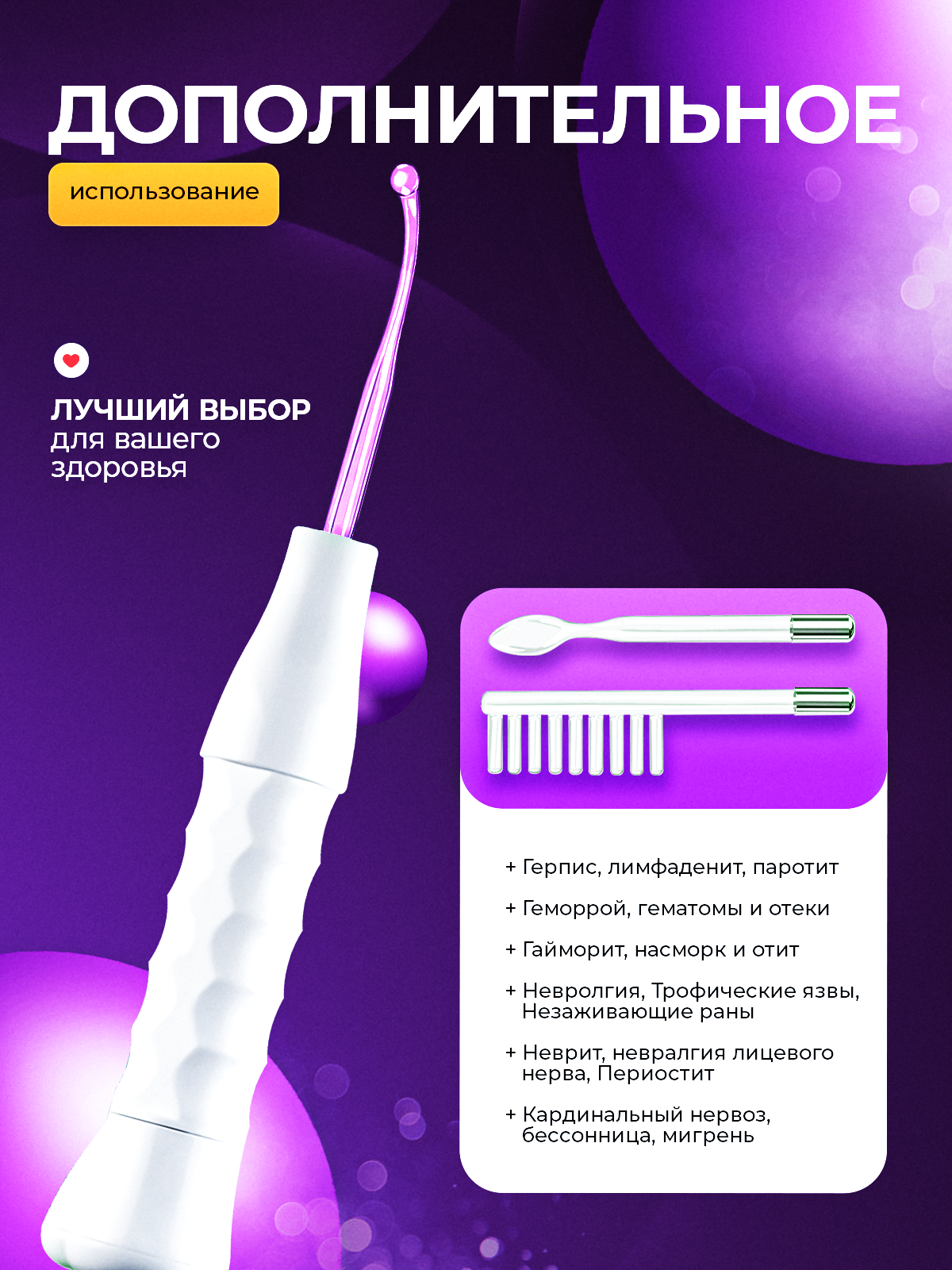 10 цен на Дарсонваль аппарат для косметологии и медицины. Белый(4насадки).