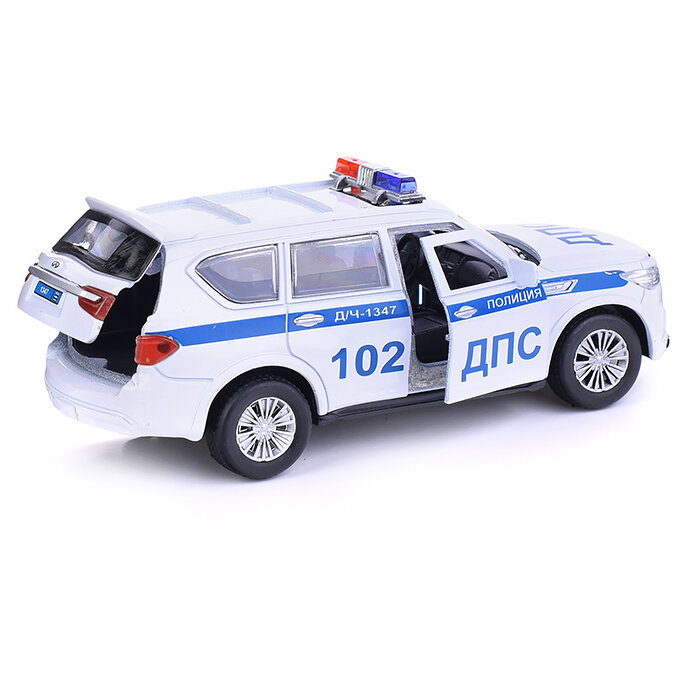 Машинка детская Infiniti QX80 Полиция 12.5 см, Технопарк, белая, открываются двери и багажник, металл