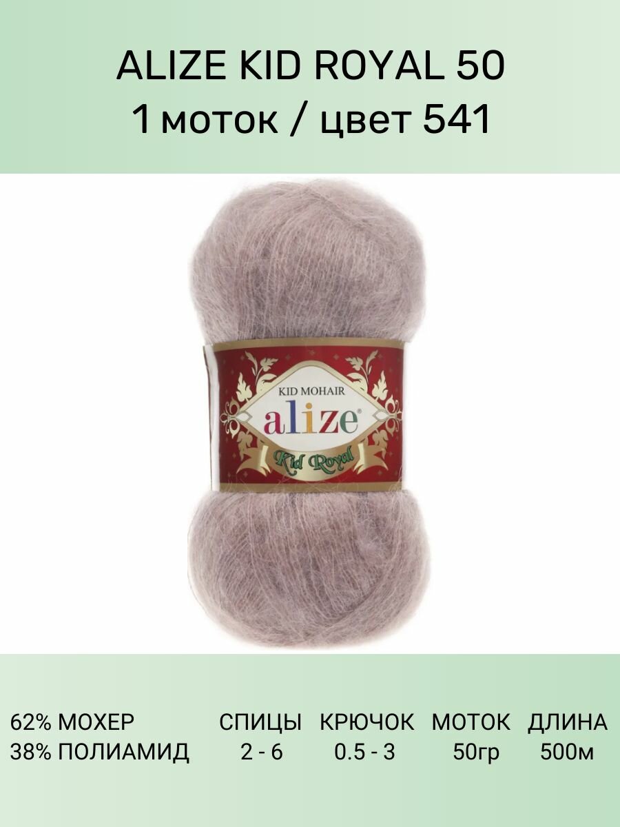 Пряжа Alize Kid Royal 50 норка (541), 62%кид мохер/38%полиамид, 500м, 50г, 1шт