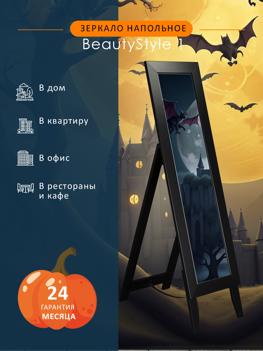 Зеркало напольное в стиле Хэллоуин BeautyStyle 1 черный 130 см х 35 см информация:
