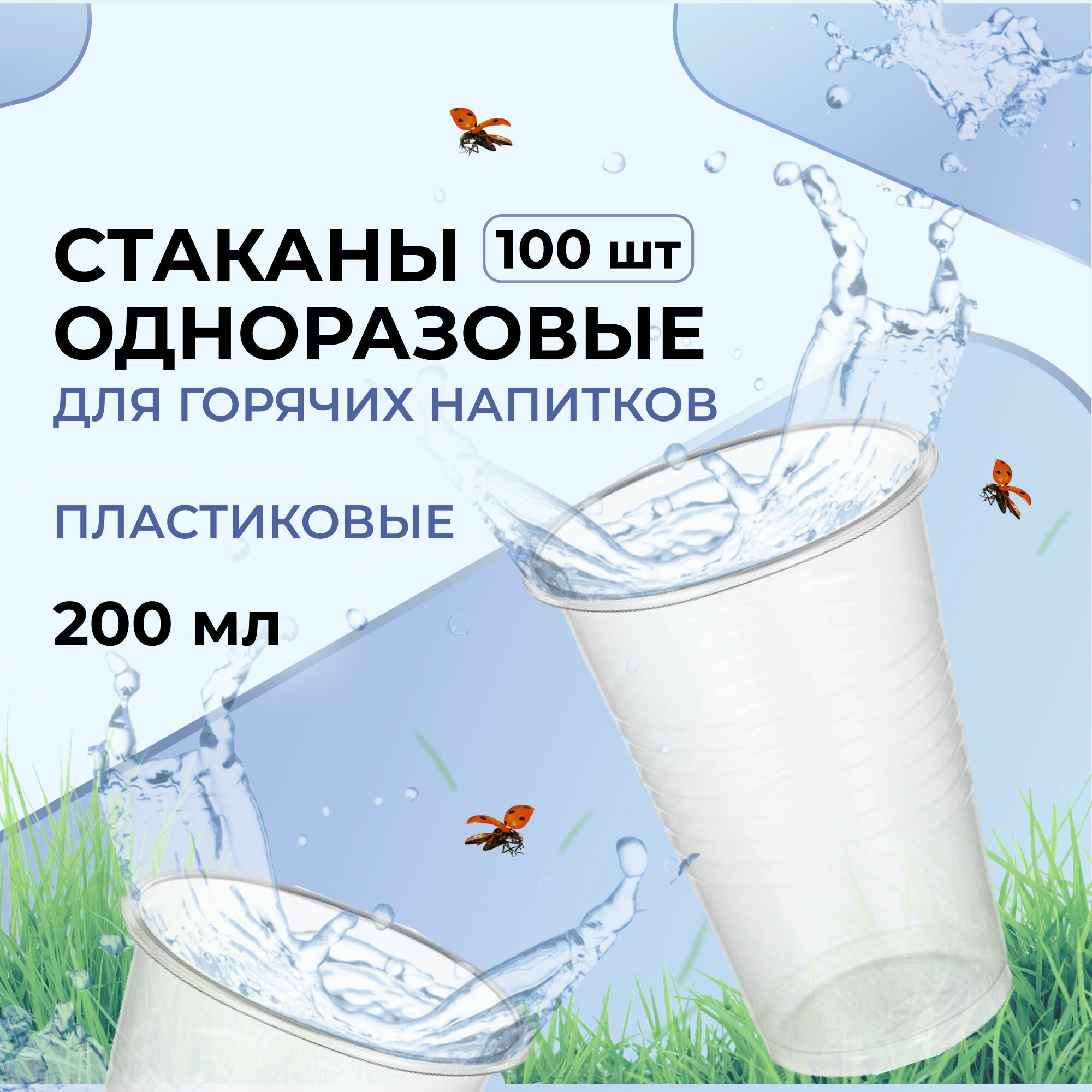Комус стаканы одноразовые пластиковые Бюджет, 200 мл, 100 шт., прозрачный информация: