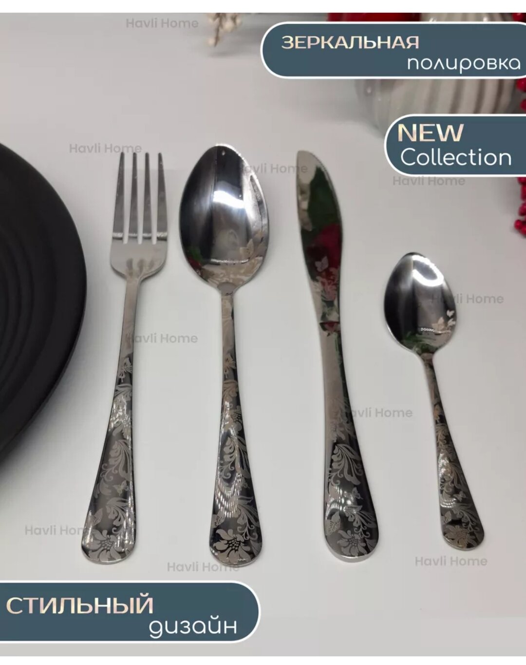 Набор столовых приборов 24шт/6персон, серебренный с необычным цветочным узором информация: