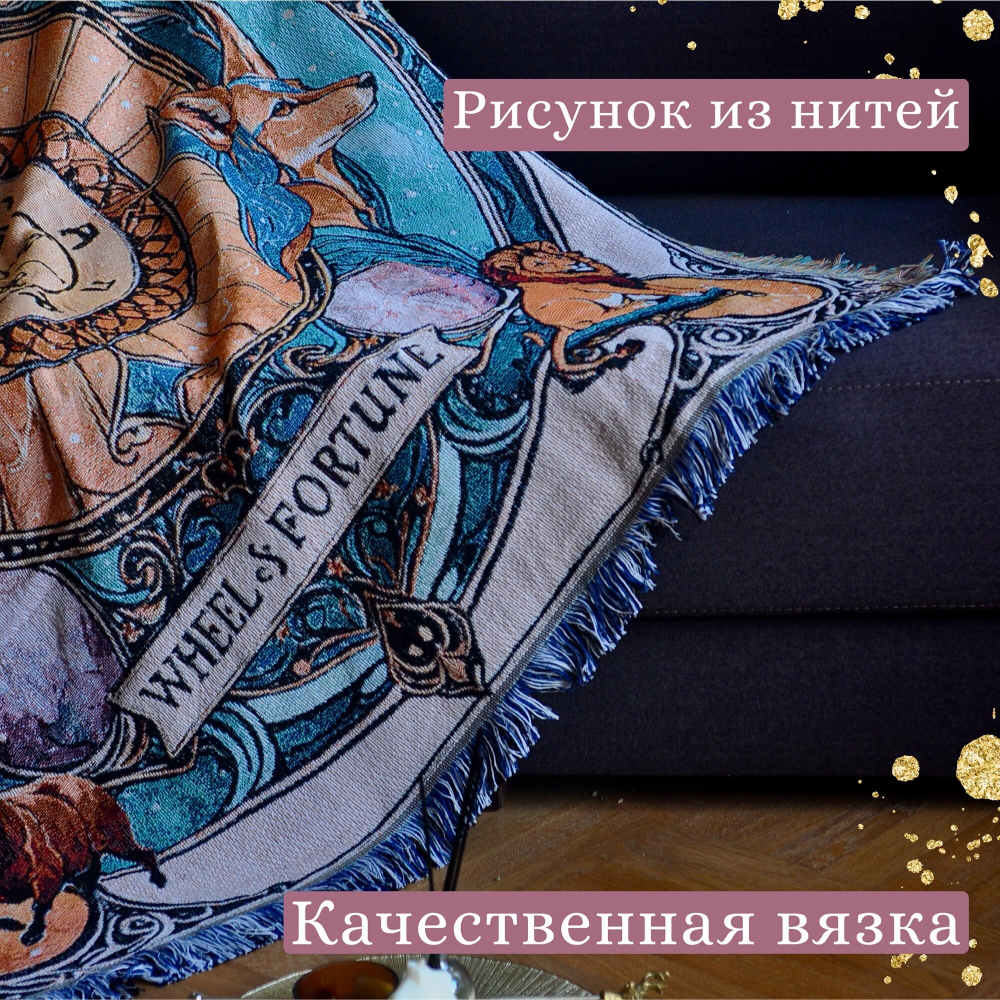 Плед-покрывало вязаный бохо для пляжа и пикника аркан таро Колесо Фортуны 180 см на 130 см информация: