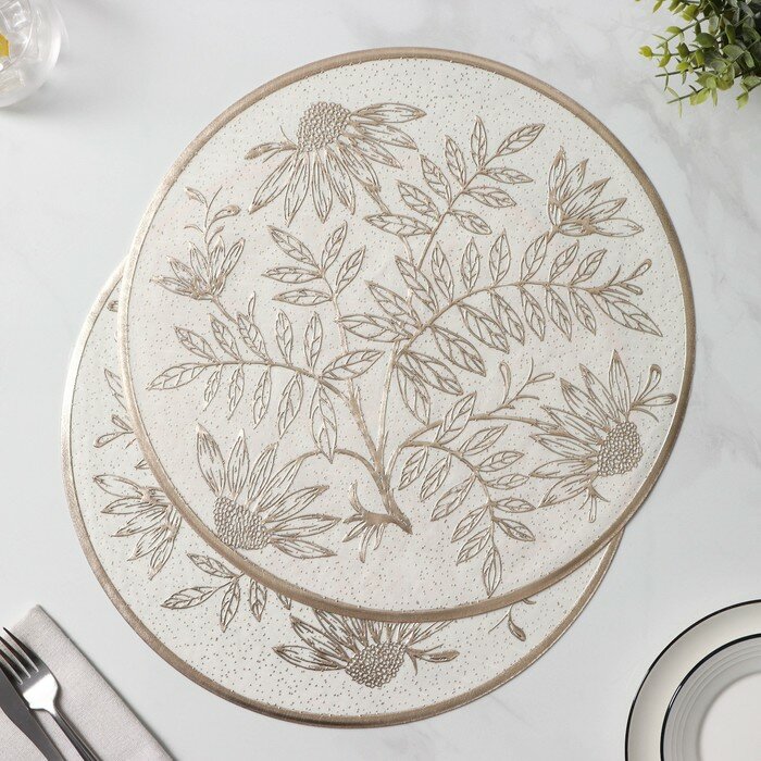 Доляна Салфетки сервировочные на стол Доляна «Ботаника», 2 шт, d=38 см, цвет бежевый информация: